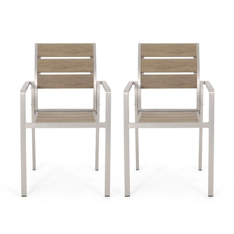 Sale price From $229 Regular price $339Unit price /UnavailableStylish Modern Faux Wood & Aluminum Outdoor Dining Chairs, (Set of 2) - Natural