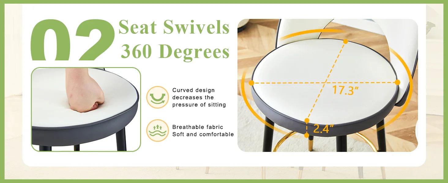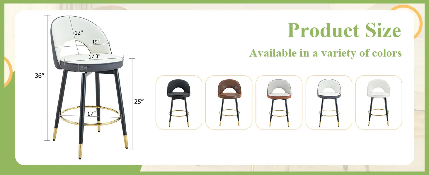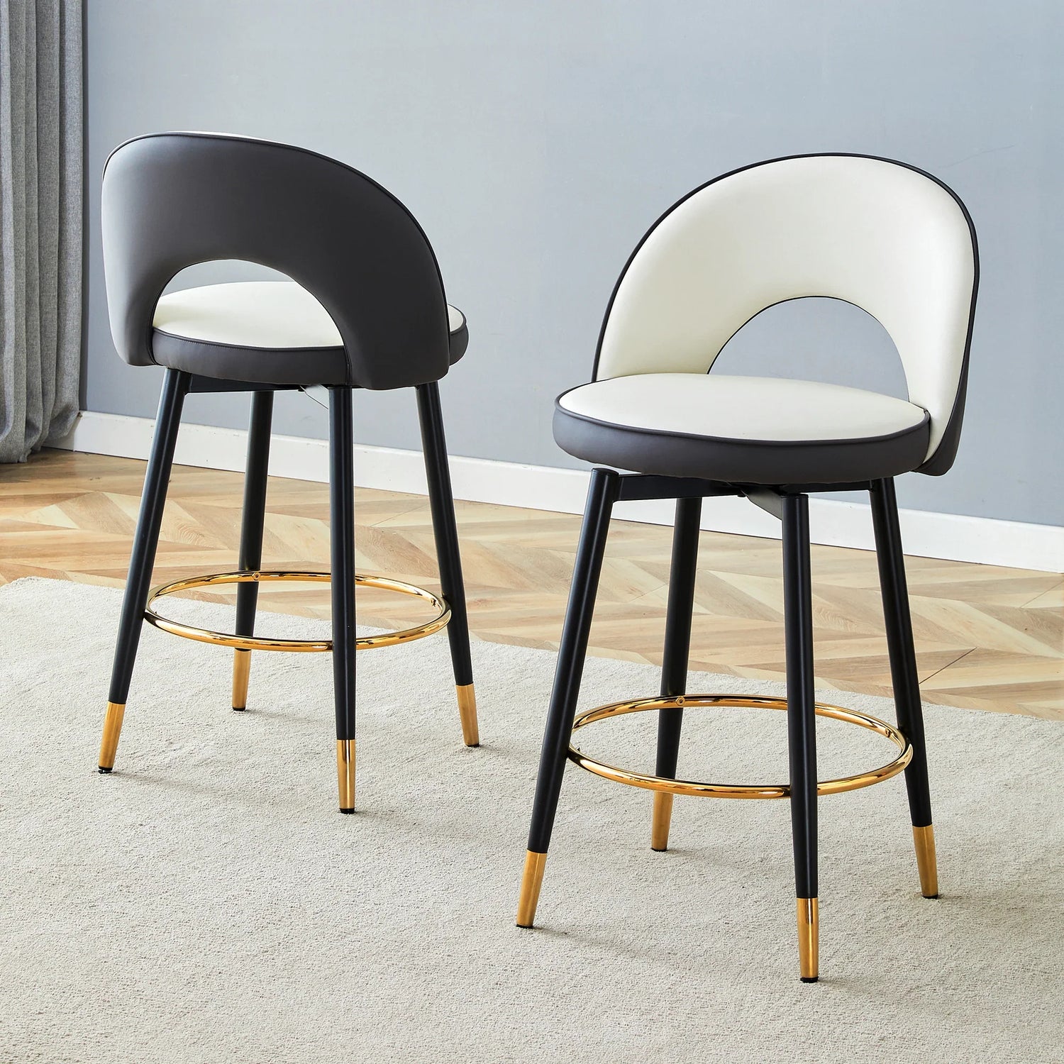 Designed for frequent use, each stool pairs a softly padded round seat and supportive curved back with a sturdy metal frame and a polished foot ring. The smooth PU leather upholstery in contrasting light and dark tones creates an elevated look that’s easy to clean and coordinates with mixed‑finish decor.