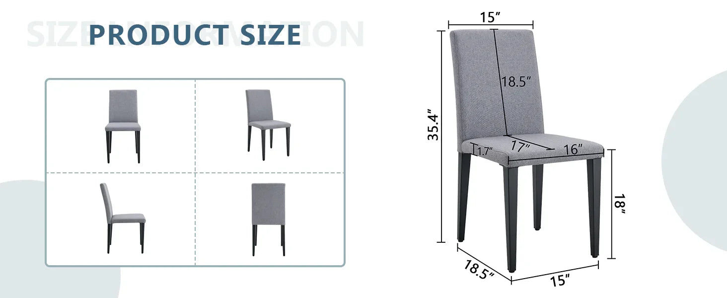 Pair these dining chairs with a light or medium‑tone wood table for Scandinavian warmth, or place around a glass or marble table for a cleaner, modern contrast. Their neutral light‑gray linen works well with muted palettes, bold accents, or mixed‑metal décor. Because of the slim frame, they tuck neatly under most dining tables when not in use, helping rooms feel more open.