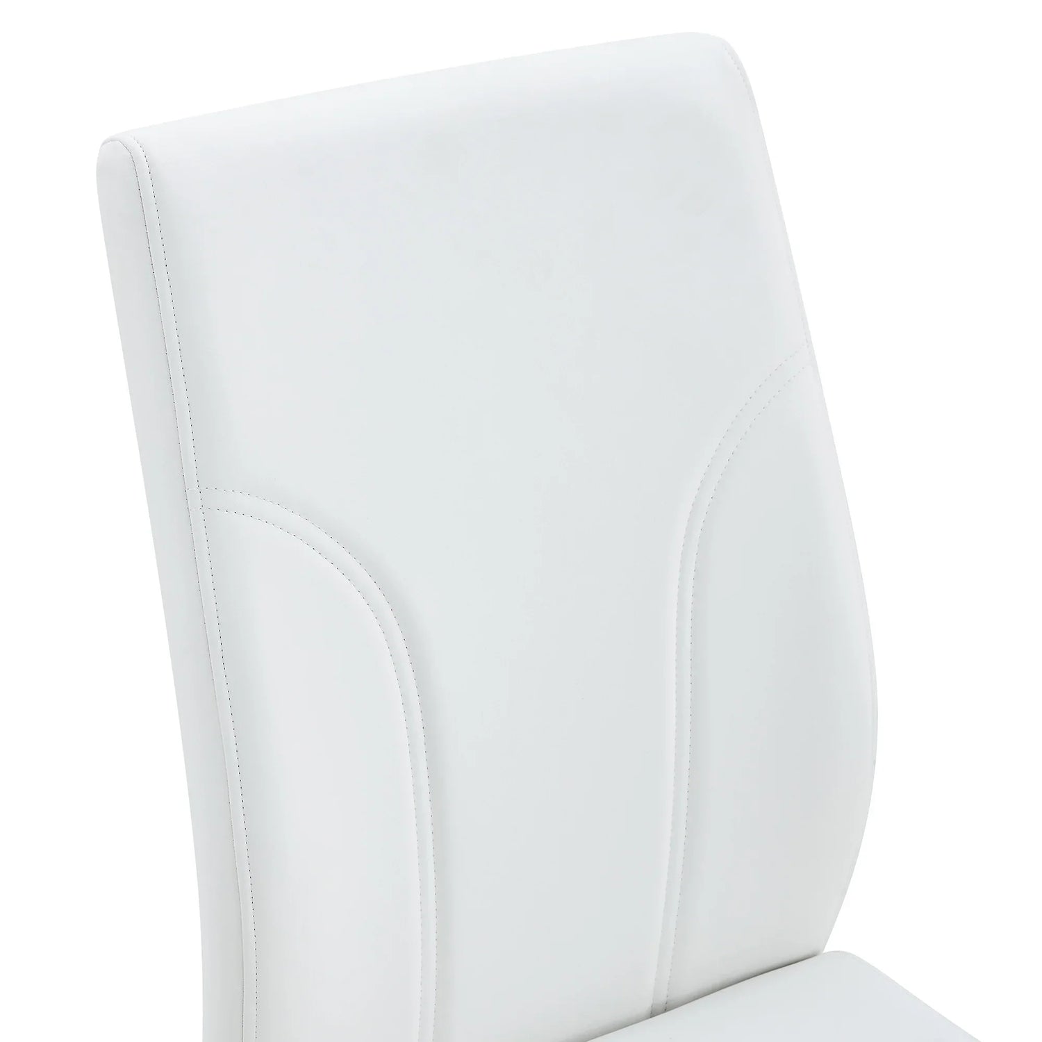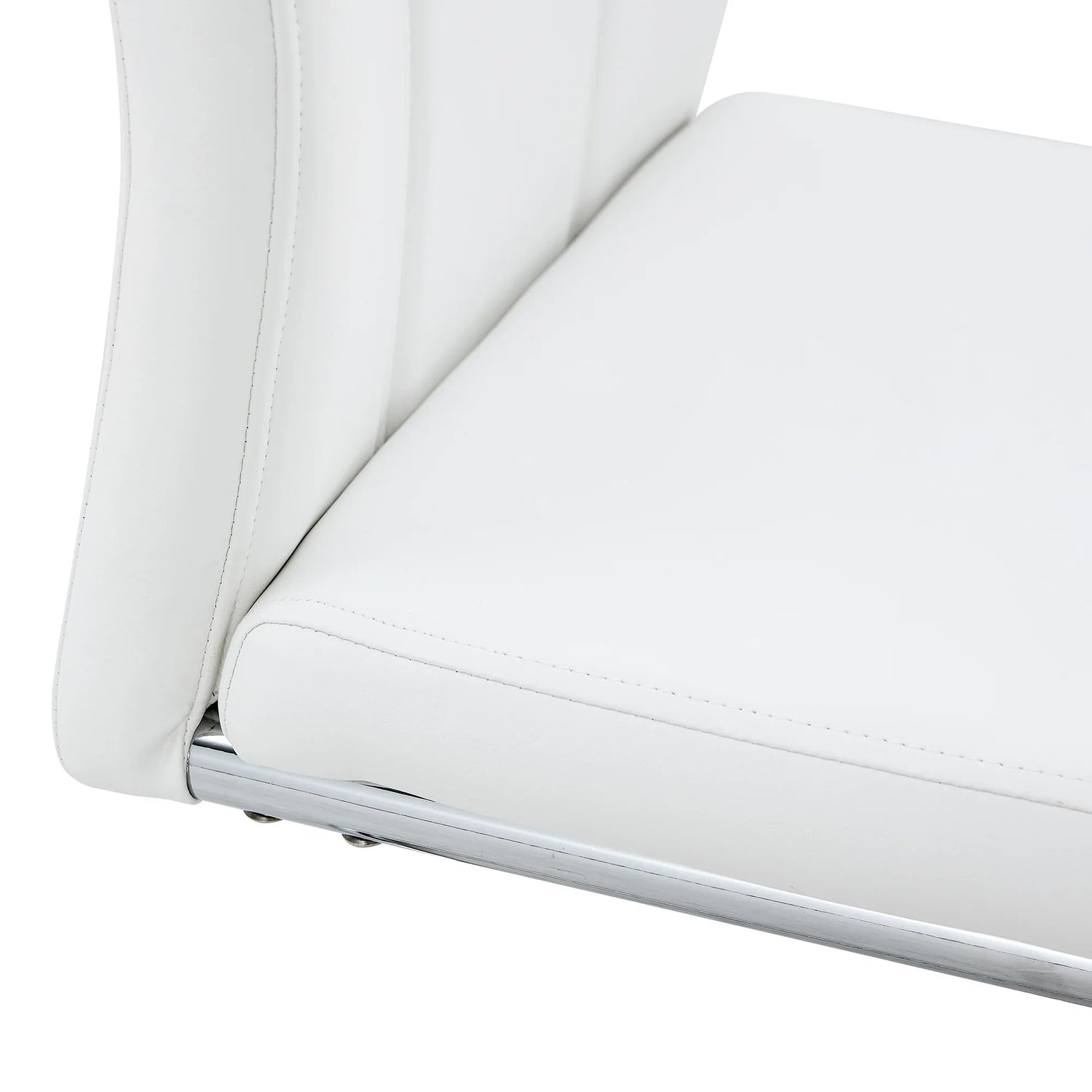 Dining Chairs Set Contemporary PU Upholstered Chrome White