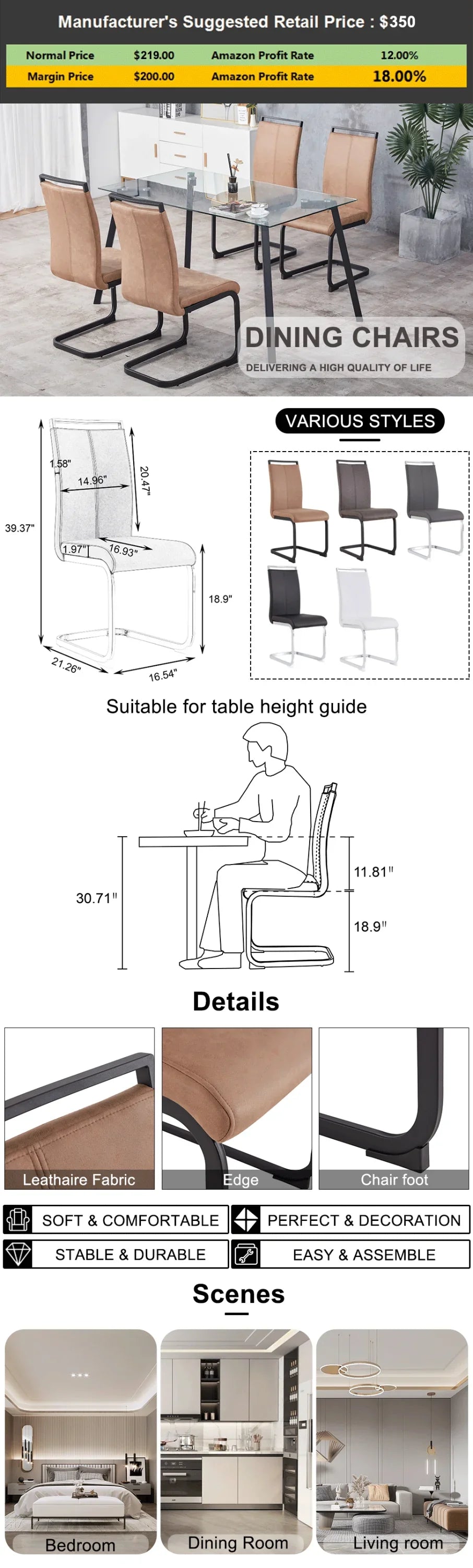 These brown upholstered chairs complement warm wood tables, white laminate tops, or black metal dining sets. Their narrow width makes them a good match for small round or rectangular tables—measure your table apron clearance and allow about 6–8" of space behind the chair for comfortable movement. Screens and natural fibers may show color variation; refer to the product images to confirm the tone and texture in your setting.