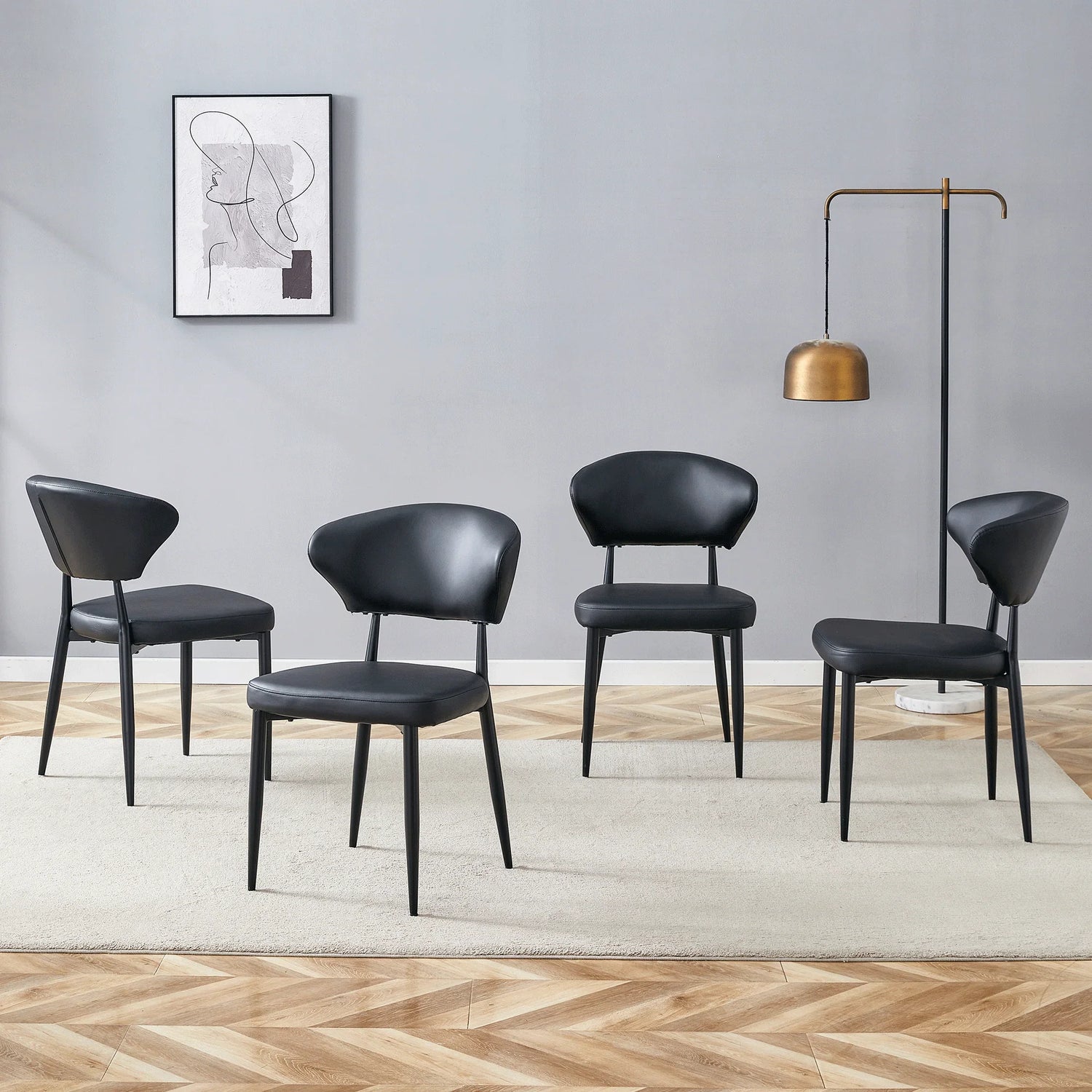Dining Chairs Set Of 4 Modern PU Leather Metal Legs Black
