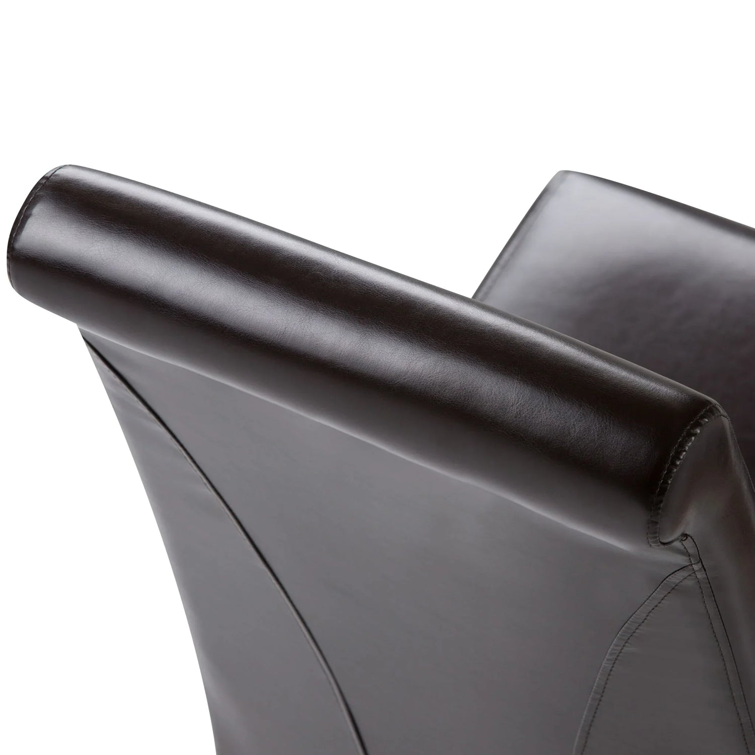 • Classic Contemporary Styling includes curved chair top detail and solid wood legs in brown