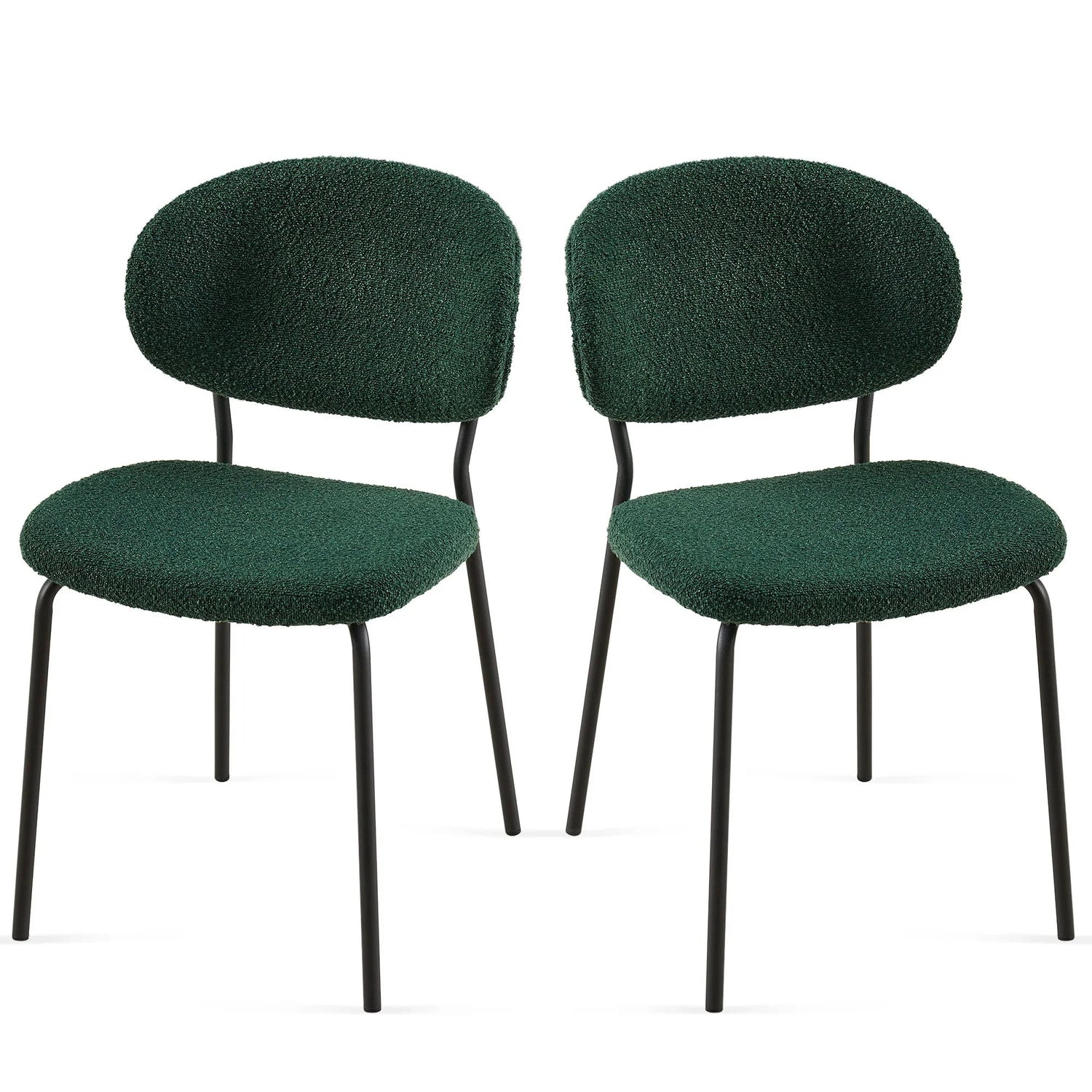 Boucle Dining Chairs, Dining Chairs With Metal Legs For Dining Room, Kitchen, Living Room (Set of 2) - Dark Green