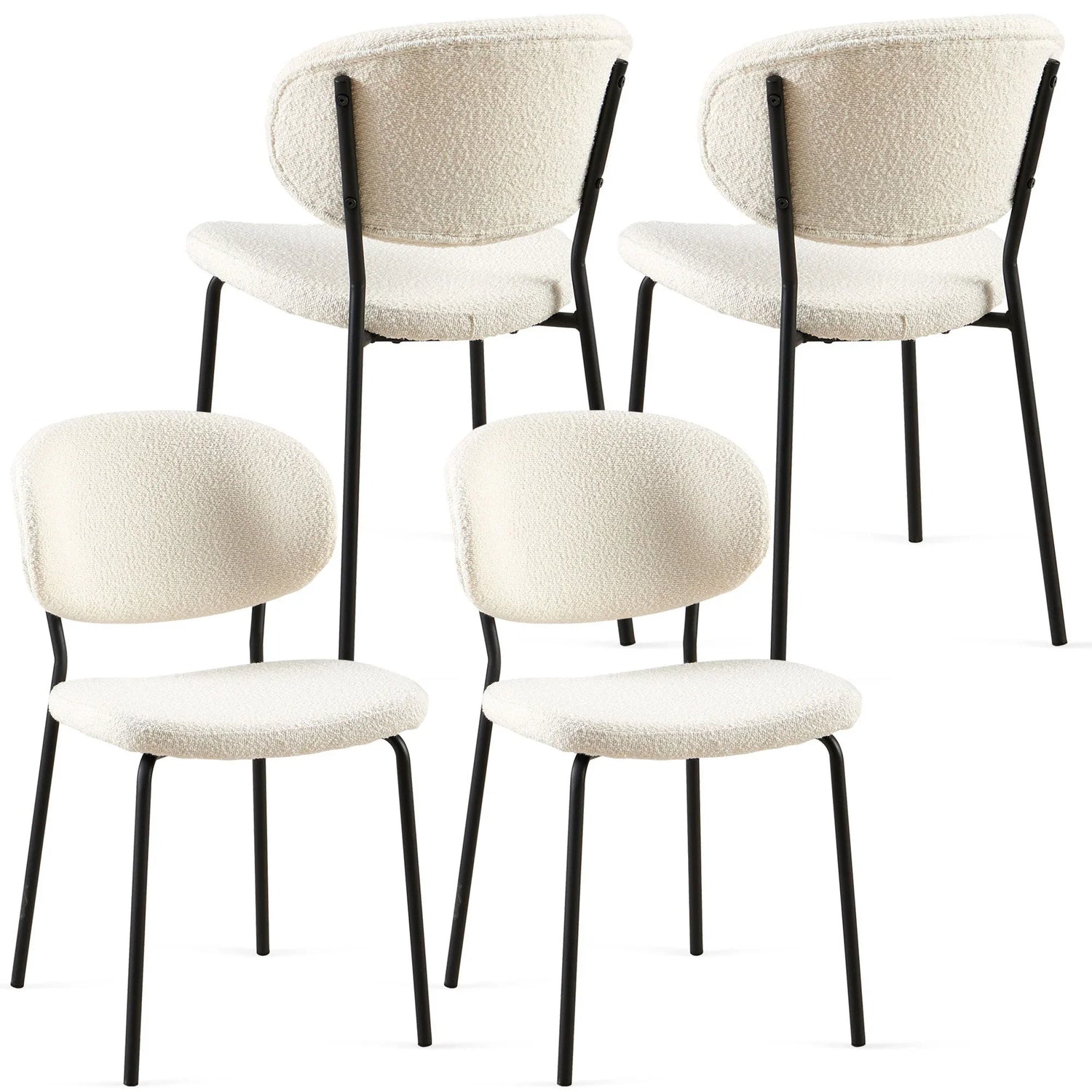 Boucle Dining Chairs, Modern Dining Room Chairs With Black Metal Legs, Armless Kitchen Chair For Dining Room, Living Room (Set of 4) - Beige