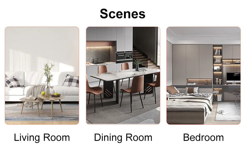 Pair this set with a glass, marble, or light-wood dining table to amplify the contemporary contrast between cool metal and soft upholstery. Works well in dining rooms, open-plan kitchens, or as guest seating; because of the slim profile, these chairs suit medium to small dining areas without overwhelming the space.