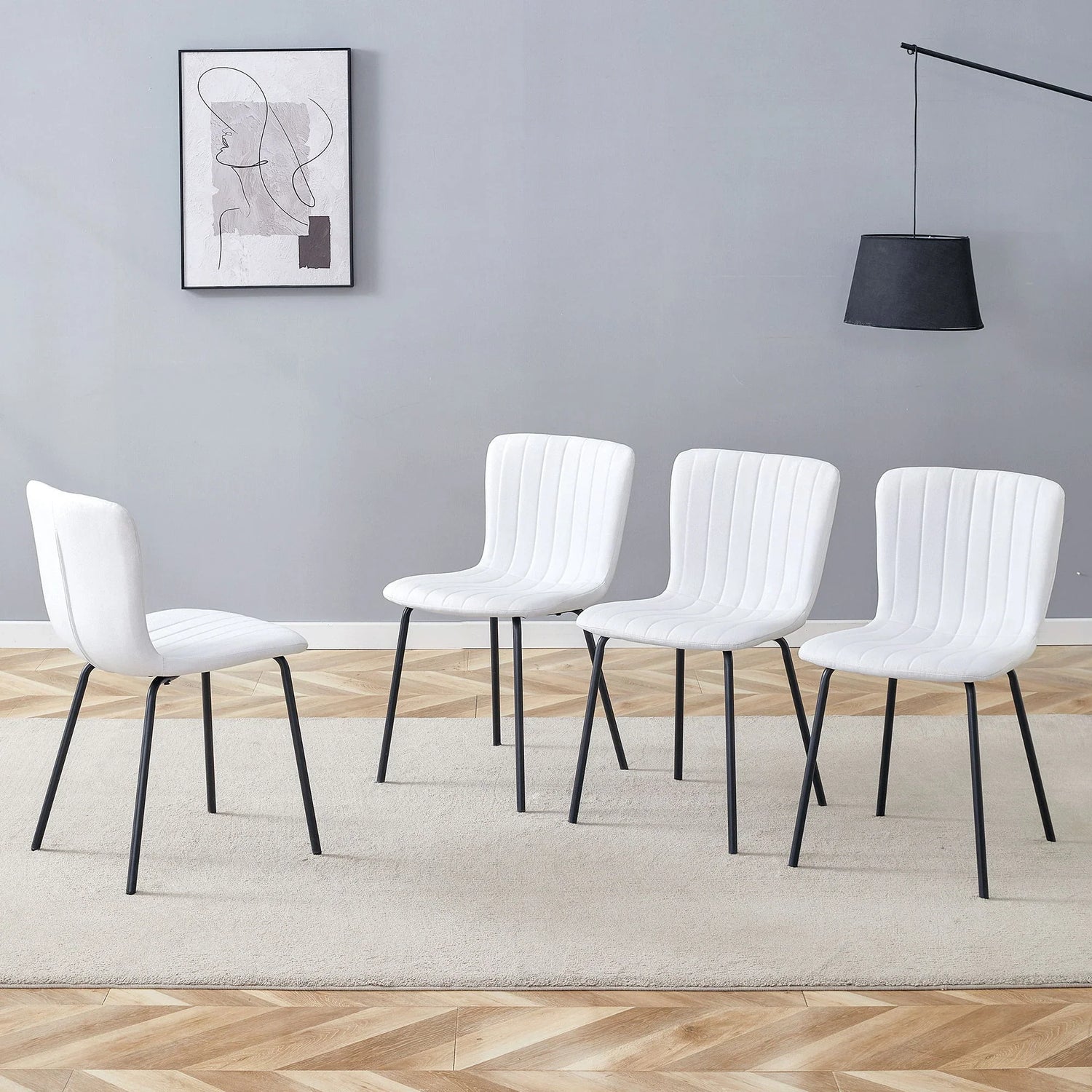 Luxury Minimalist Dining Chairs (Set of 4) With Black Metal Legs - White