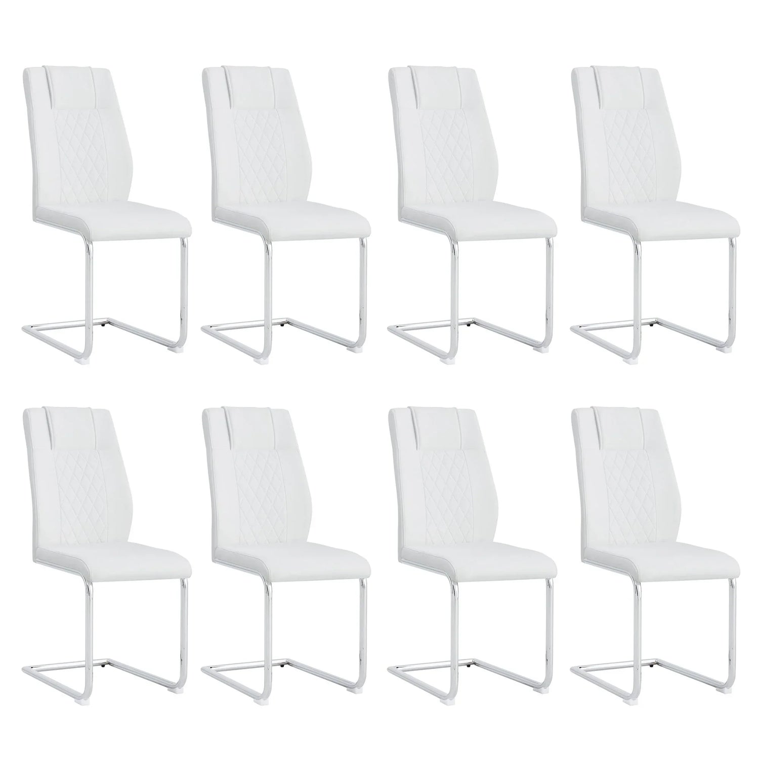 Modern Dining Chairs With Padded Seat Metal Legs (Set of 8) - White