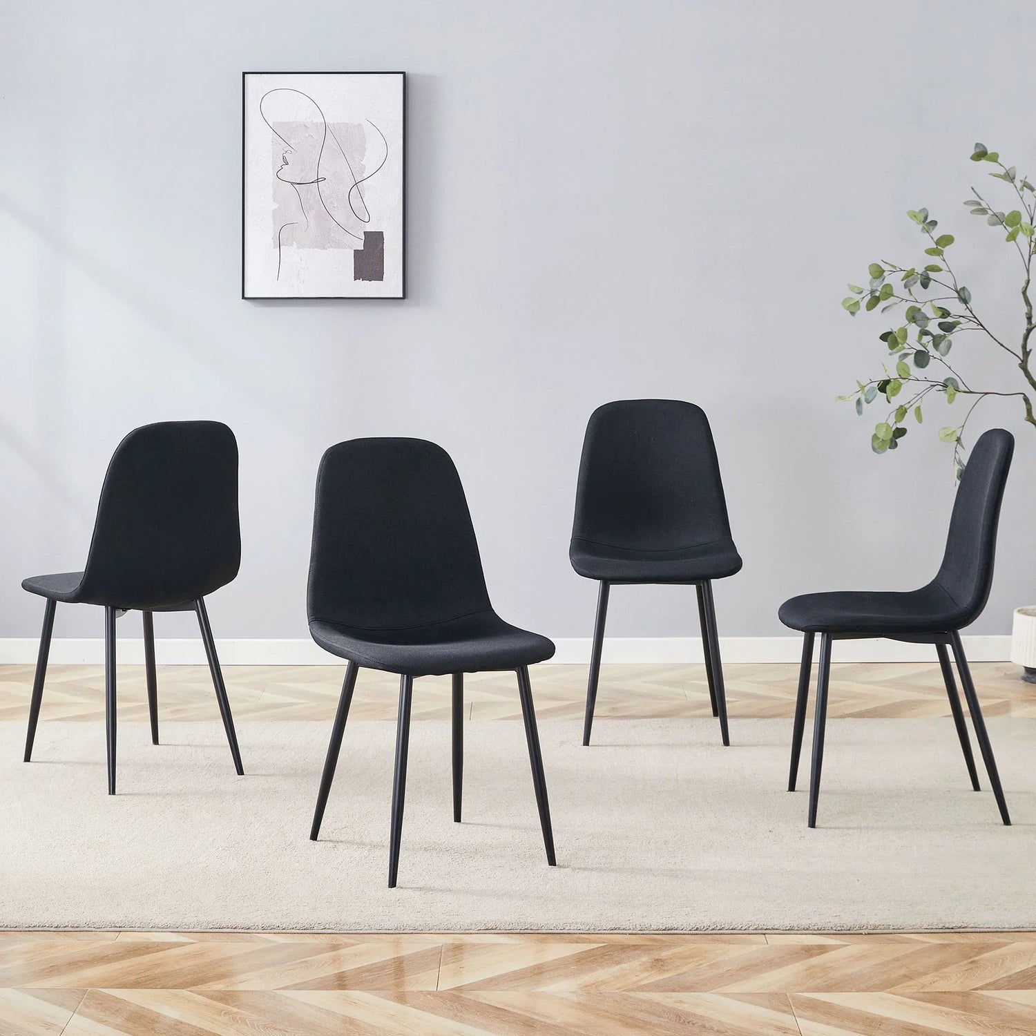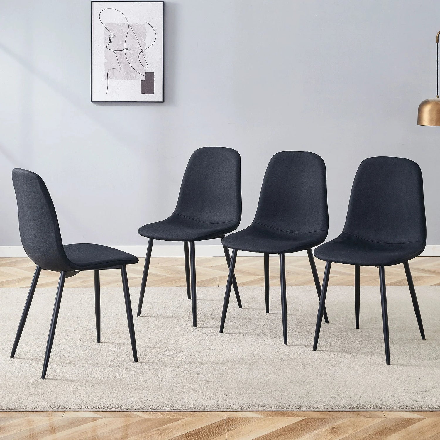 Luxury Simple Chair (Set of 4) Linen Cotton High Resilience Dining Chair With Metal Leg - Black