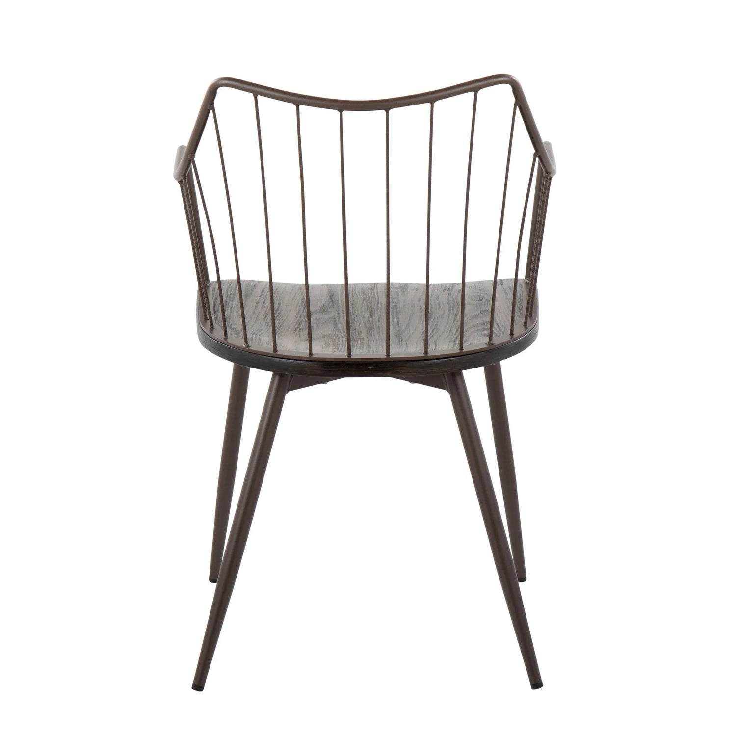 Built with a sculpted wood-look seat and slender steel spindles and legs, this chair pairs classic Windsor-inspired details with durable, direct-to-consumer construction. The dark walnut–tone seat and warm saddle-brown metal frame read as an updated classic that layers easily with wood tables, mixed materials, and relaxed, contemporary farmhouse decor.