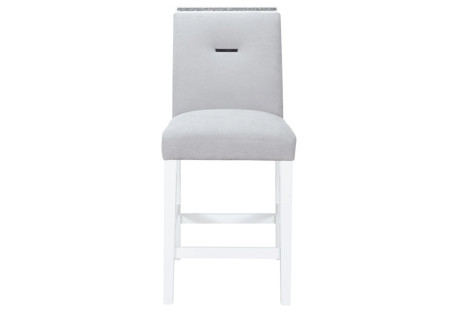 Wipe wood surfaces with a soft, damp cloth and dry immediately. Blot spills on upholstered chairs promptly; vacuum regularly to remove dust. Avoid harsh solvents or abrasive cleaners to preserve the painted finish and metallic trim. For fabric care, follow any manufacturer label instructions if provided.