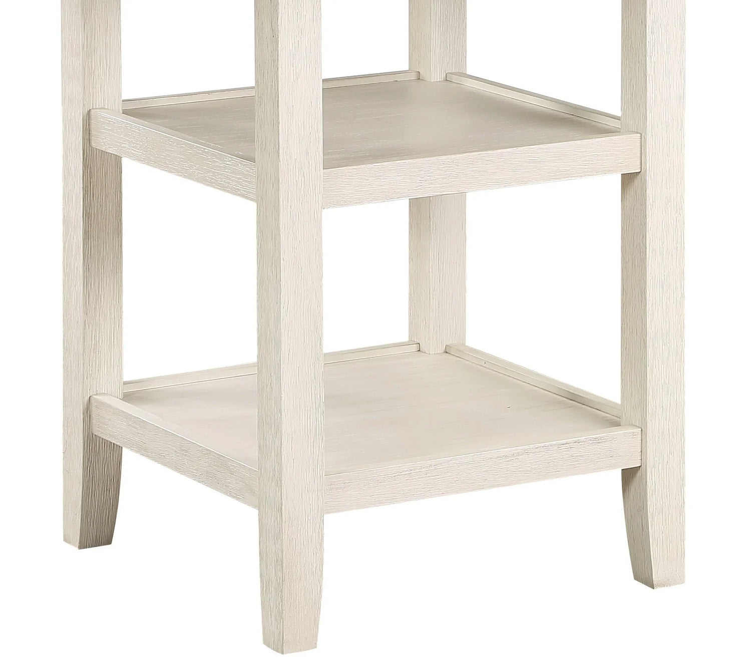 The Asher Collection Counter Height Dining Set with Shelves in Antique White is made for casual gatherings and compact dining rooms where style and function share the table. This transitional, round counter‑height dining set seats four and pairs the warm, weathered look of an antique white finish with a darker table top accent and light brown fabric seats to create a relaxed, modern farmhouse feel that fits breakfast nooks, open-plan kitchens, or small dining areas.
