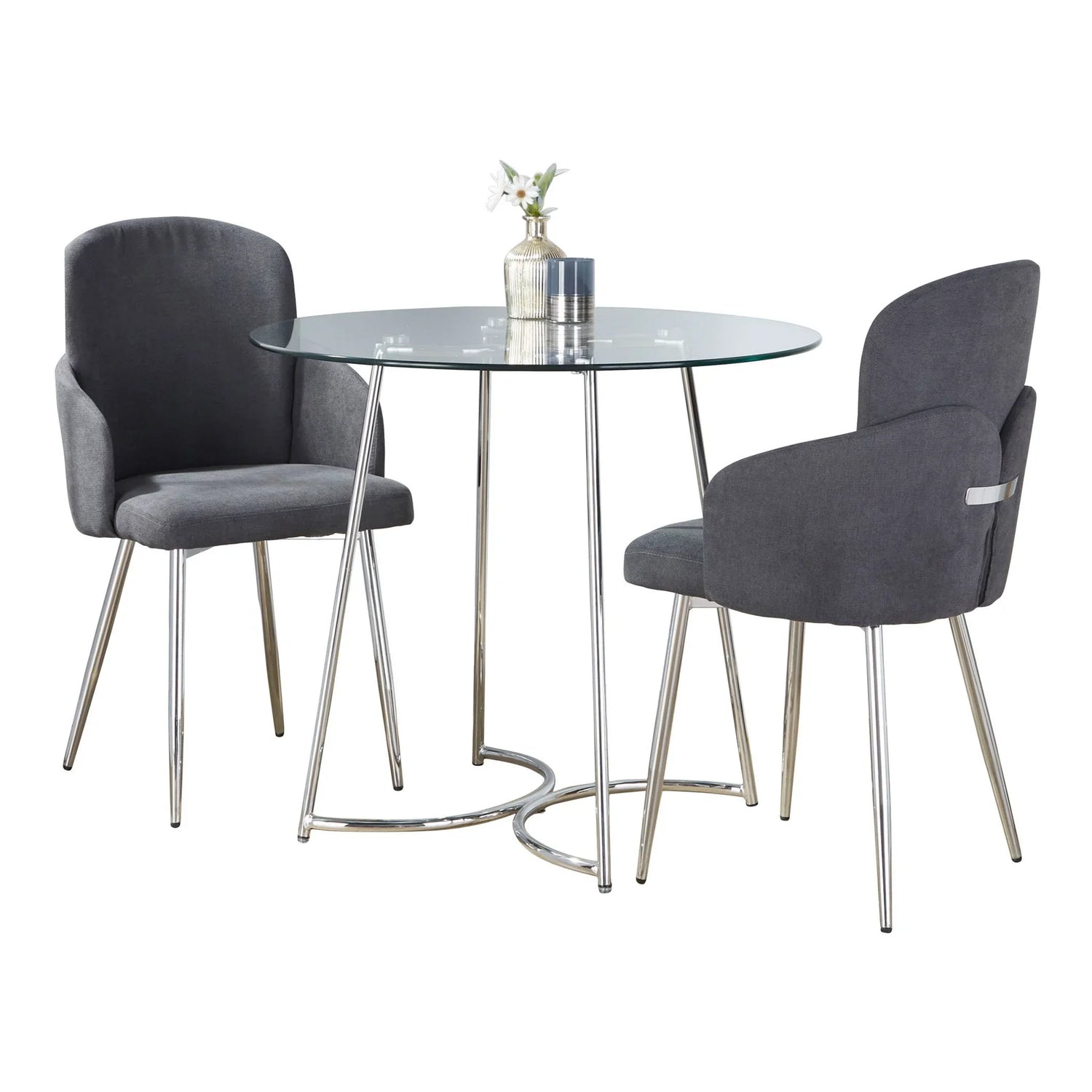 Cece Dahlia - 3 Piece Contemporary Dining Set - Chrome / Clear / Gray