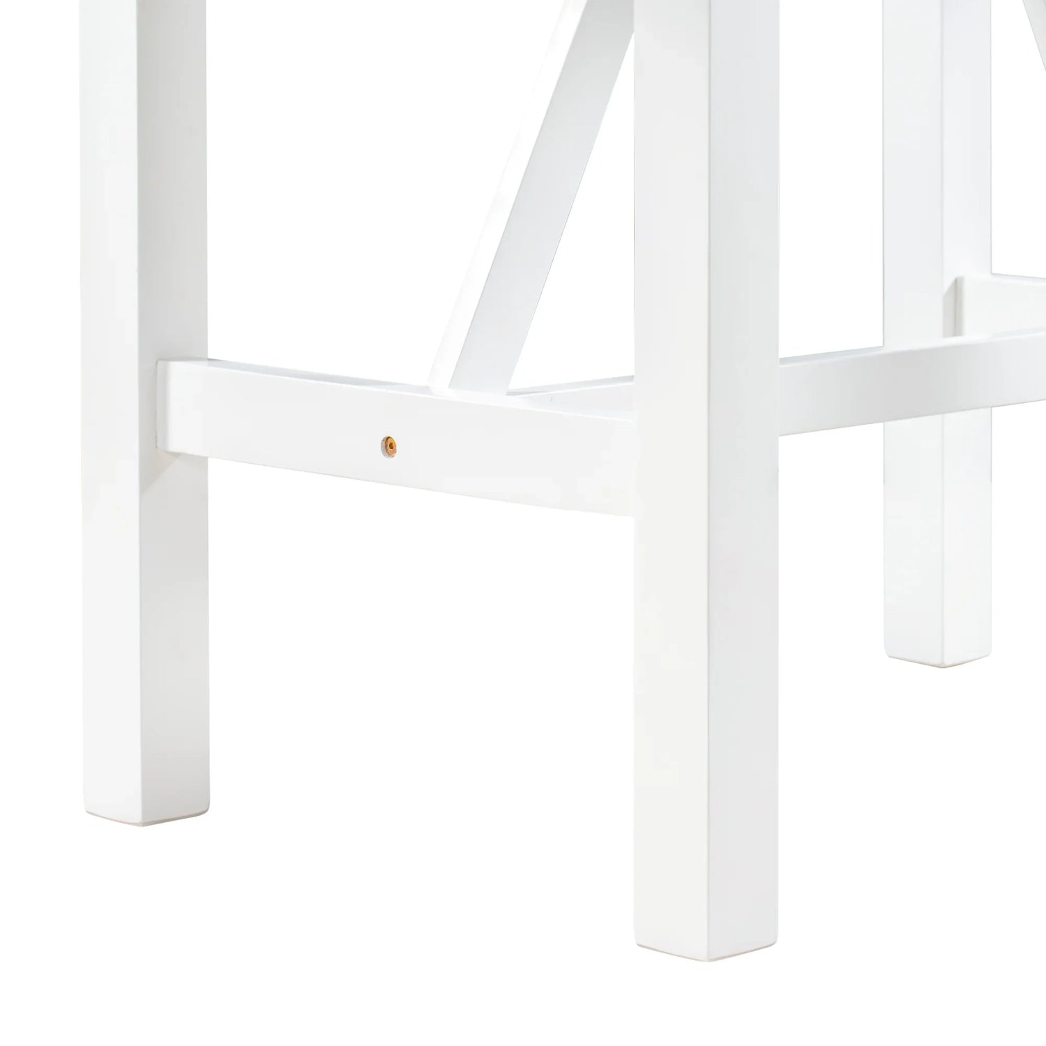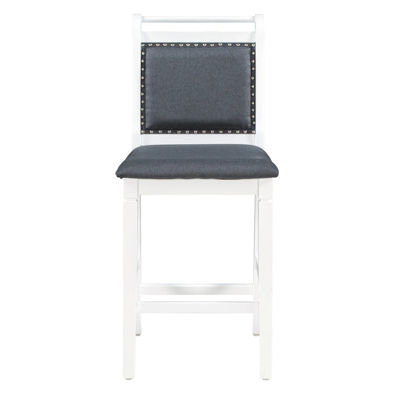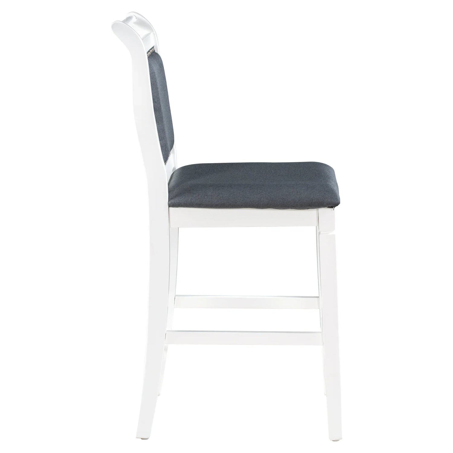 - [Premium Construction] Built with solid rubber wood frame, this kitchen set is designed to last for years. The combination of a finished white coating with dark gray cushion is ideal for indoor rustic feelings while the triangular supportive bars and stretcher under table create a sturdy dining experience.
