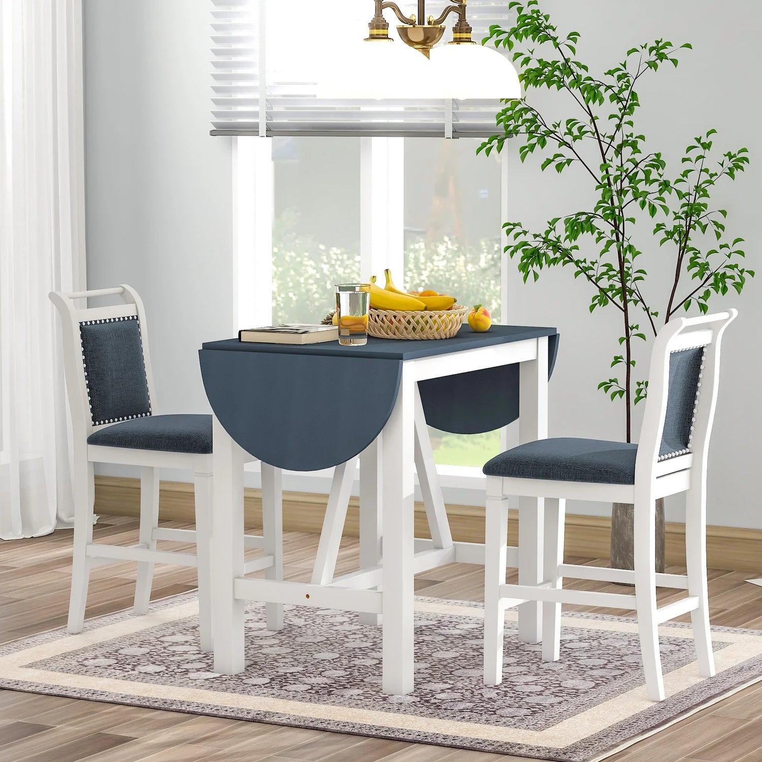 - [Extendable Drop Leaf Design] Offer 2 great dining chairs and an attractive kitchen table,this refined dinette set will reinvent your dining room with its extendable drop leaf design. Featured with two foldable half-round sides, this table provides you with the flexibility of creating more living space or eating space as needed.