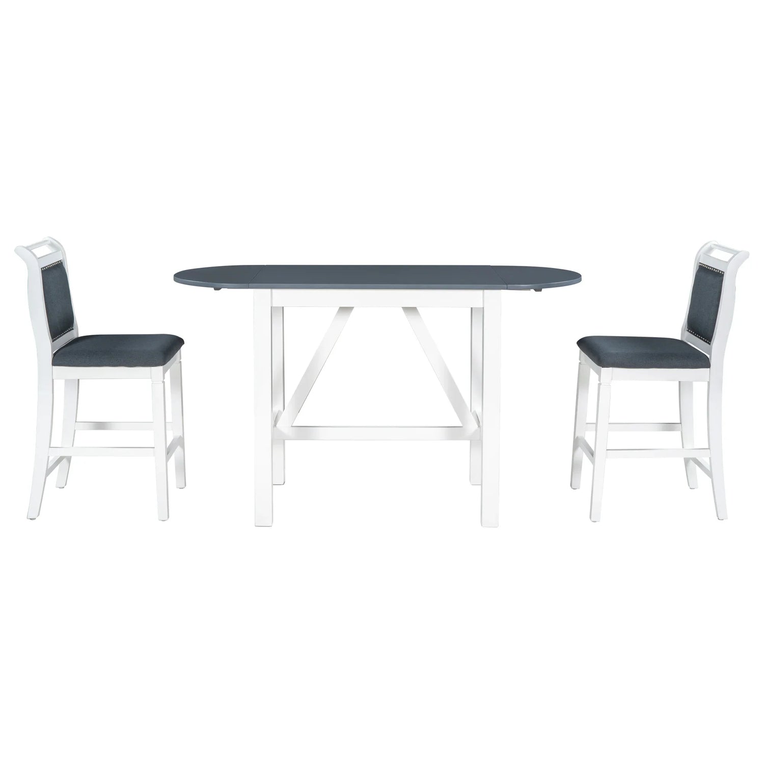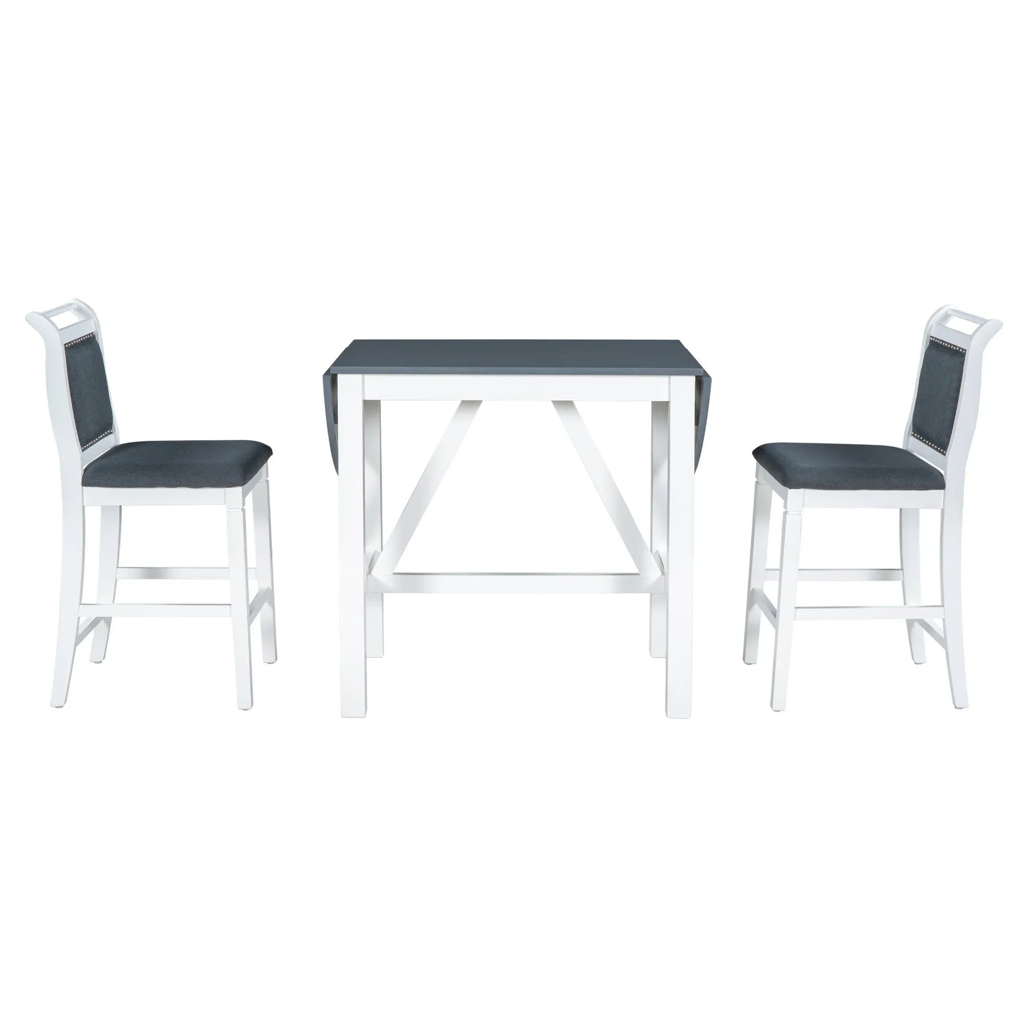 Dining Set Drop Leaf Counter Height With 2 Chairs White Gray