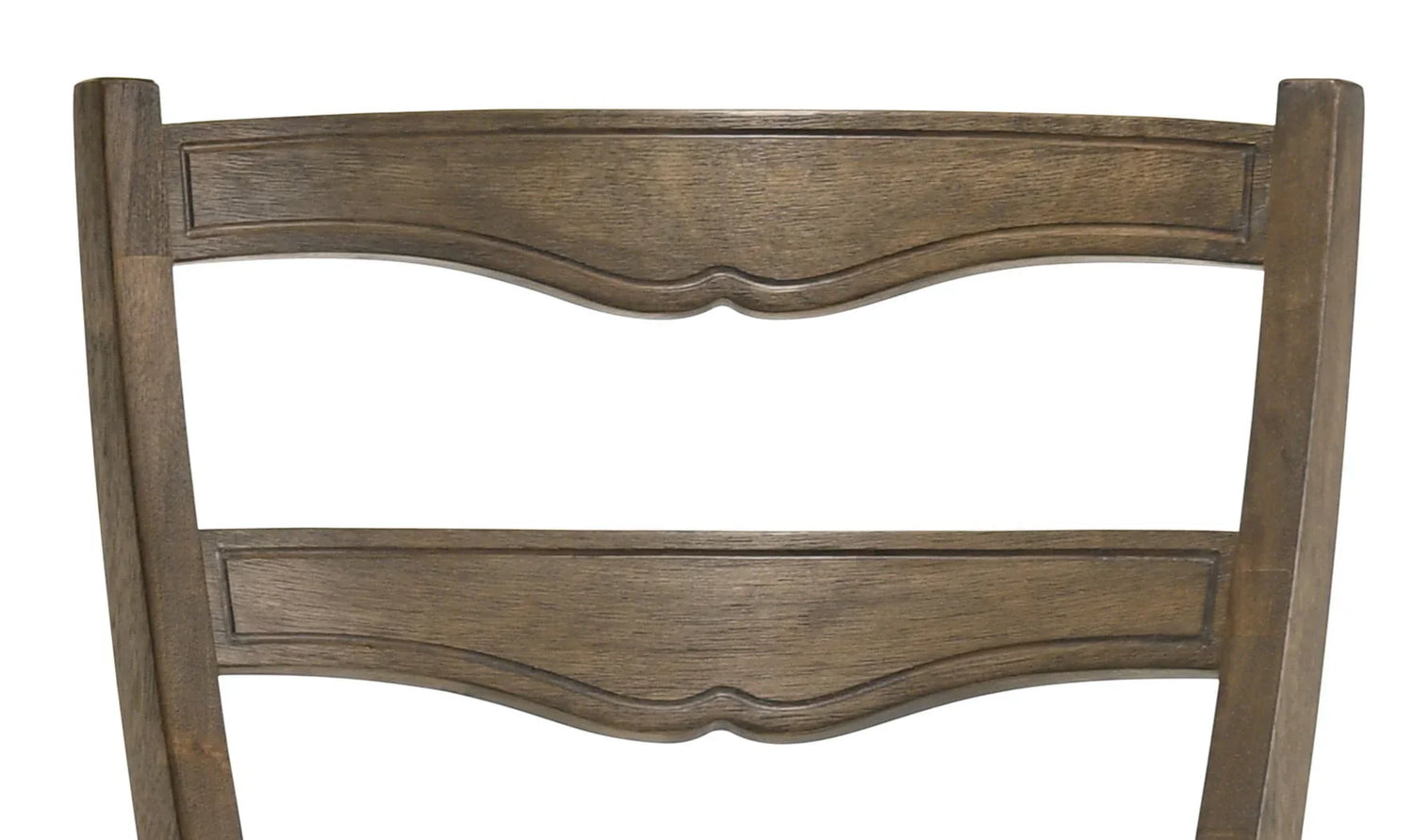 Chair (typical): Upholstered seat; ladder-back design. (Manufacturer does not provide exact chair dimensions in the supplied details.)