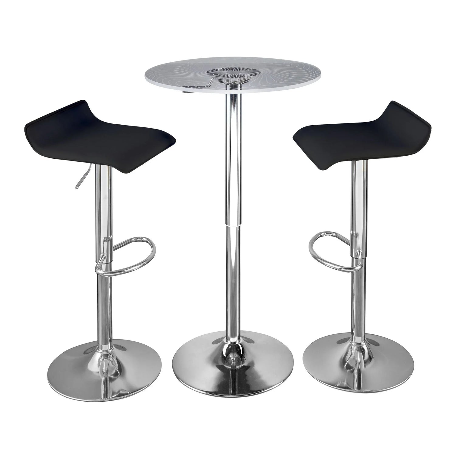 Designed with an eye‑catching acrylic tabletop etched with swirling patterns, this set adds movement to a room thanks to its color‑phasing visual effect. Polished chrome metal supports and a stable round base provide a sleek, reflective contrast to the dark contoured seats. Practical touches—like pneumatic height adjustment and integrated footrests—make this set both playful and practical for everyday use.