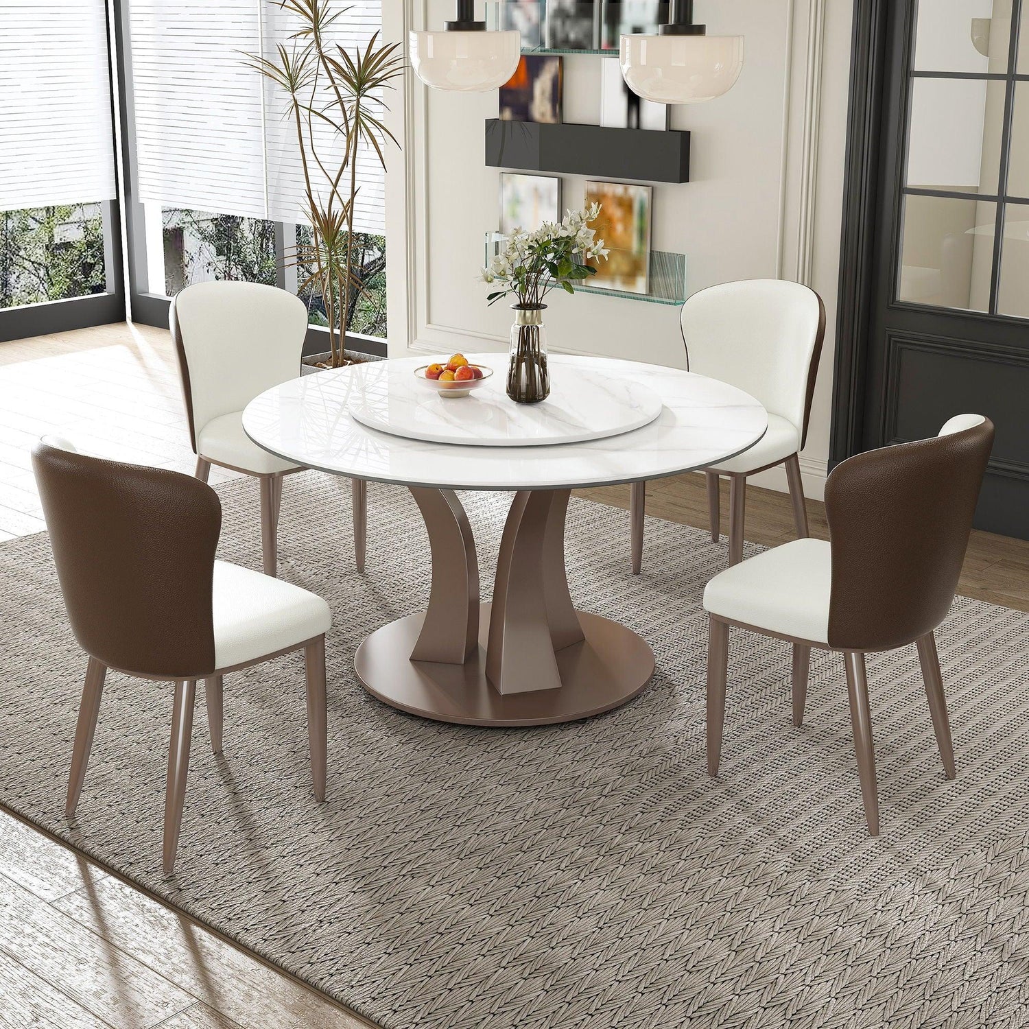 - 53-Inch Scratch-Resistant Tabletop: A wide round sintered stone surface with a polished marble-like finish ensures superior scratch and stain resistance. Rounded edges prevent accidental bumps, enhancing dining safety.