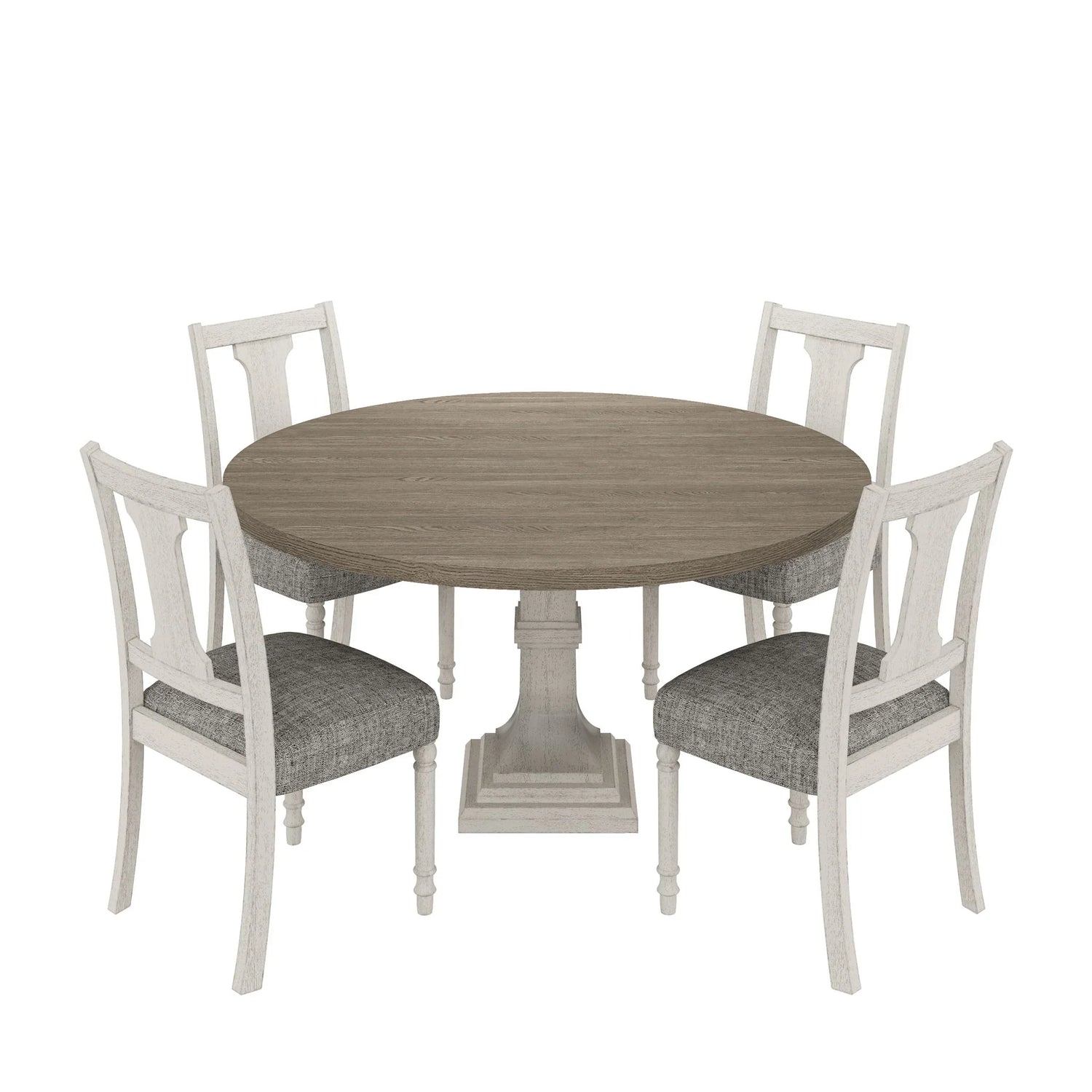 Tannen - Round 5 Piece Dining Table (Set of 5) - White And Gray