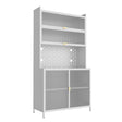 Tall Kitchen Pantry Cabinet With Flip Doors And Pegboard, Anti Tip Steel Storage Hutch - White