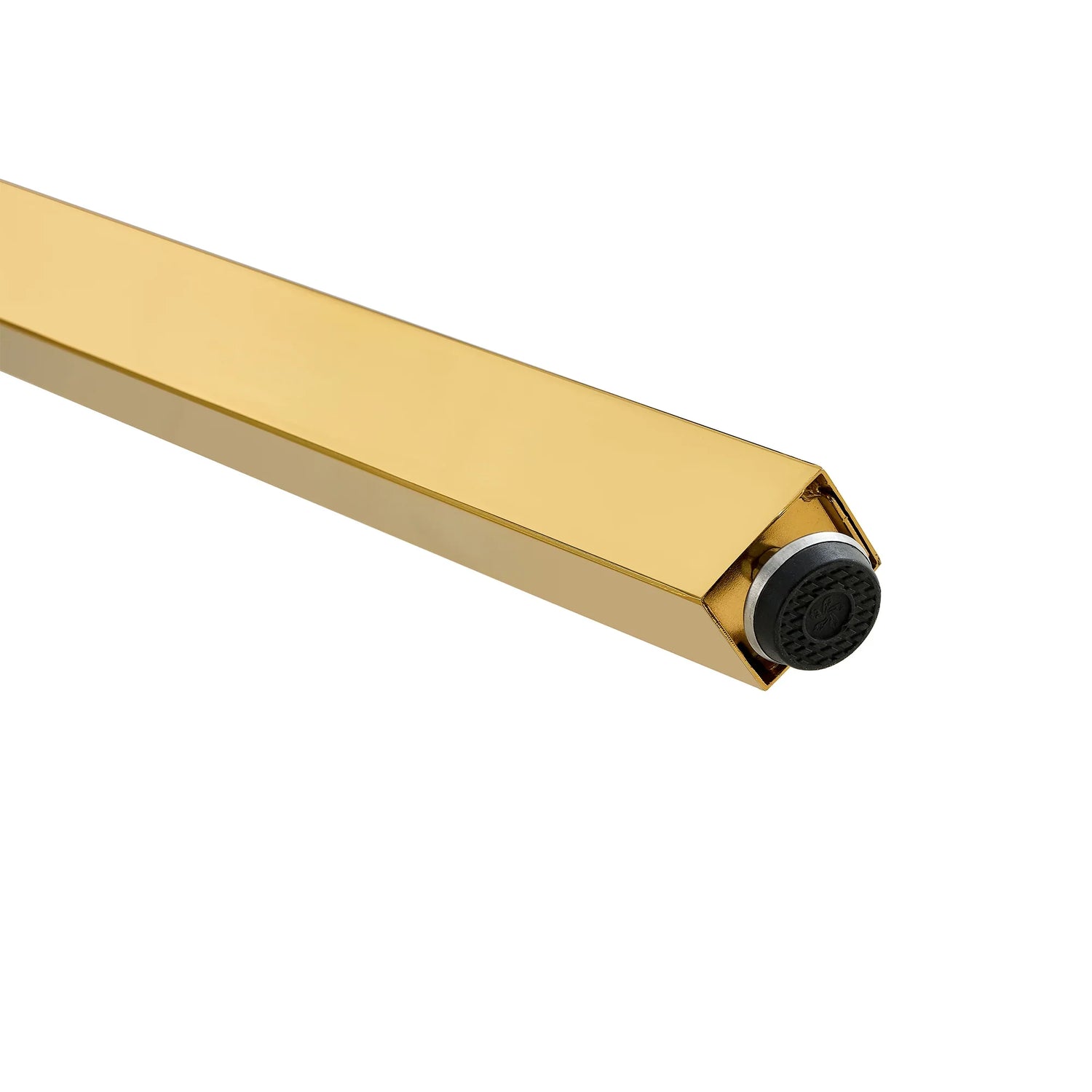 • Base & legs: Metal frame with gold finish; four‑point leg support visible where legs meet the glass top.