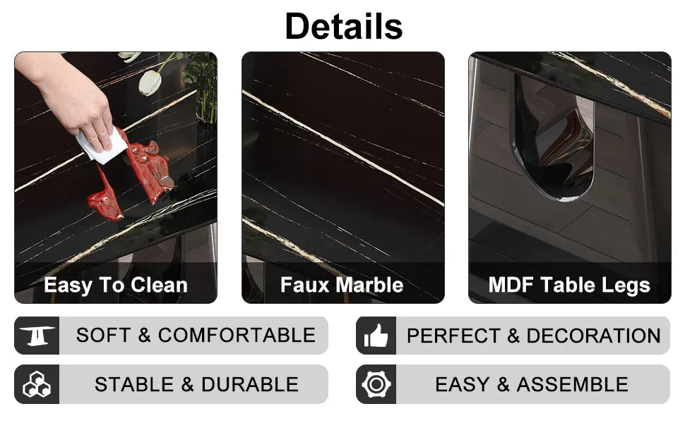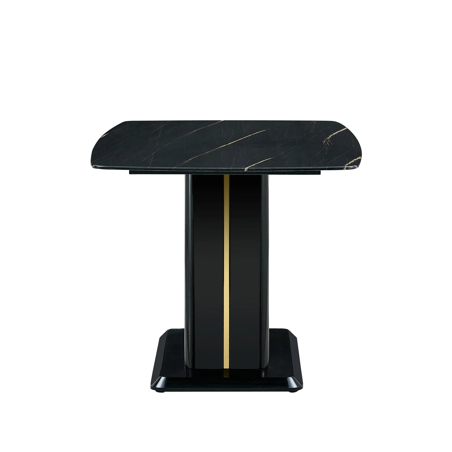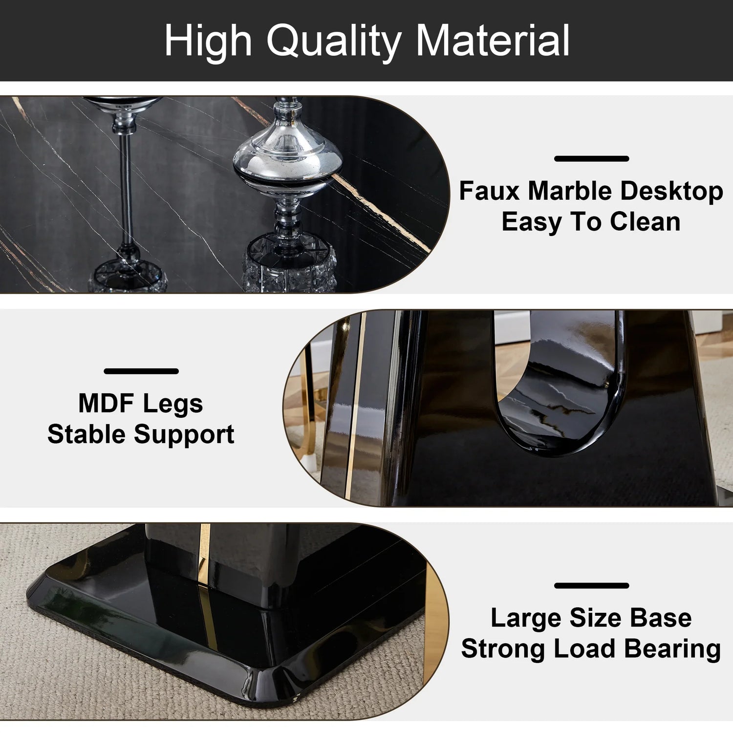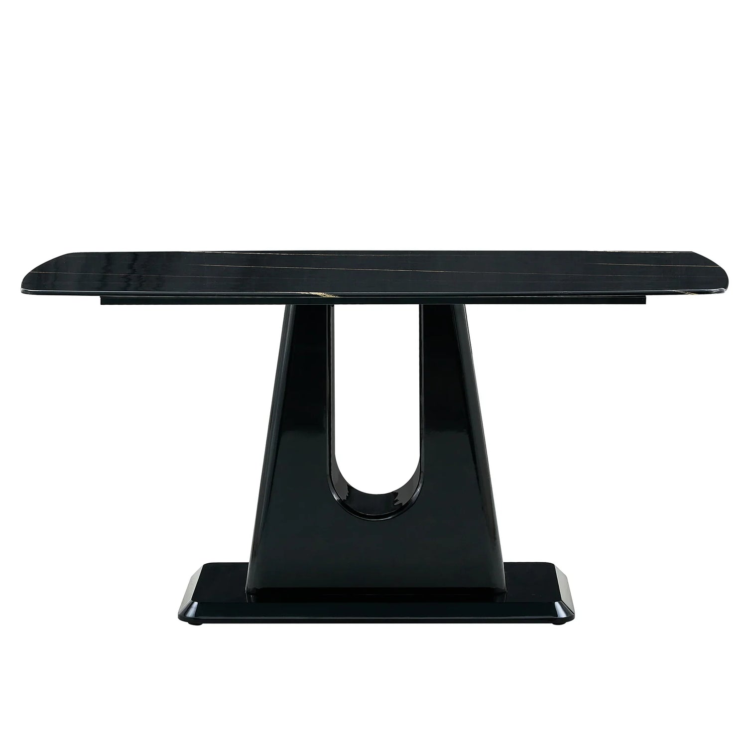 Dining Table With Imitation Marble Top, Modern Black - Furniture Home Direct