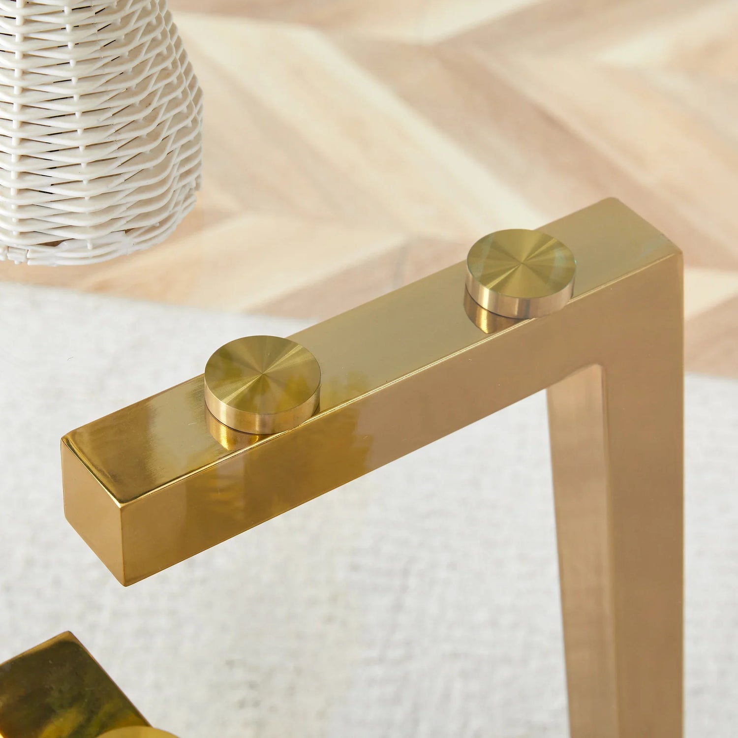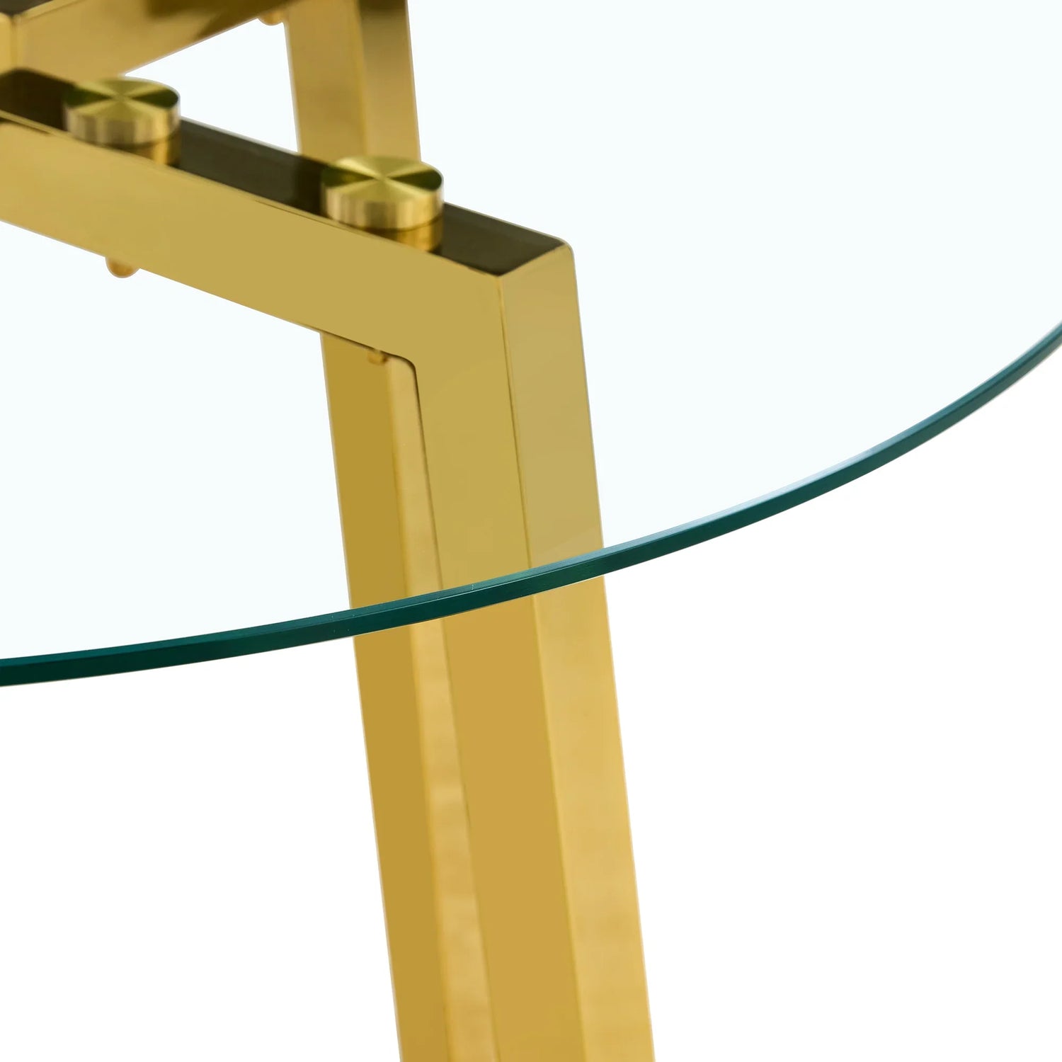 • Finish & color: Gold metal finish with a clear, transparent glass top. Finish has warm, yellow-gold undertones; actual finish may vary slightly in natural light or on different screens.