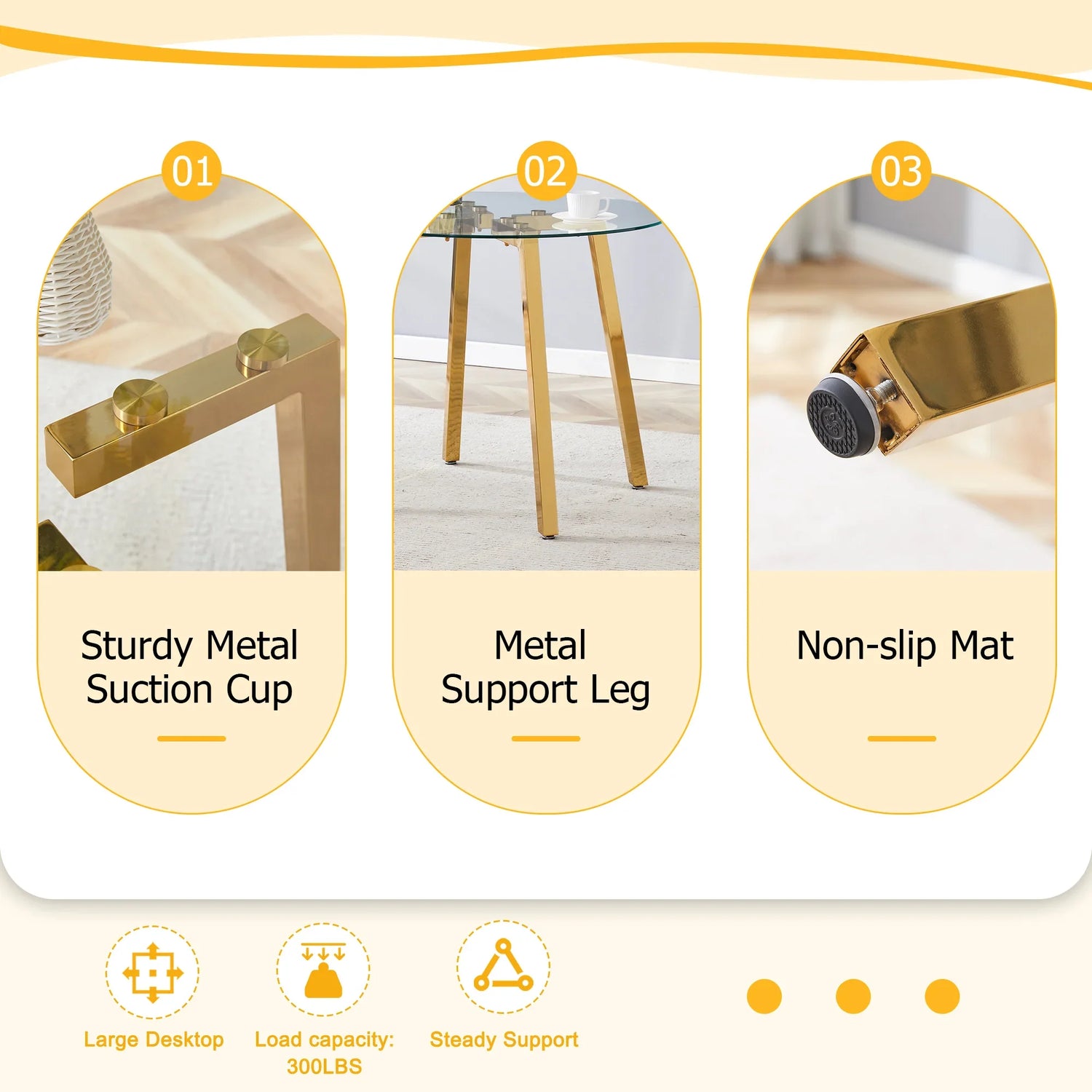 This round glass dining table is made for compact dining areas, breakfast nooks, or modern apartments where sleek design and easy upkeep matter. At 36 inches across it comfortably seats up to four people, giving you an open, airy surface that makes small rooms feel larger while keeping a refined, contemporary look with a warm gold metal base.