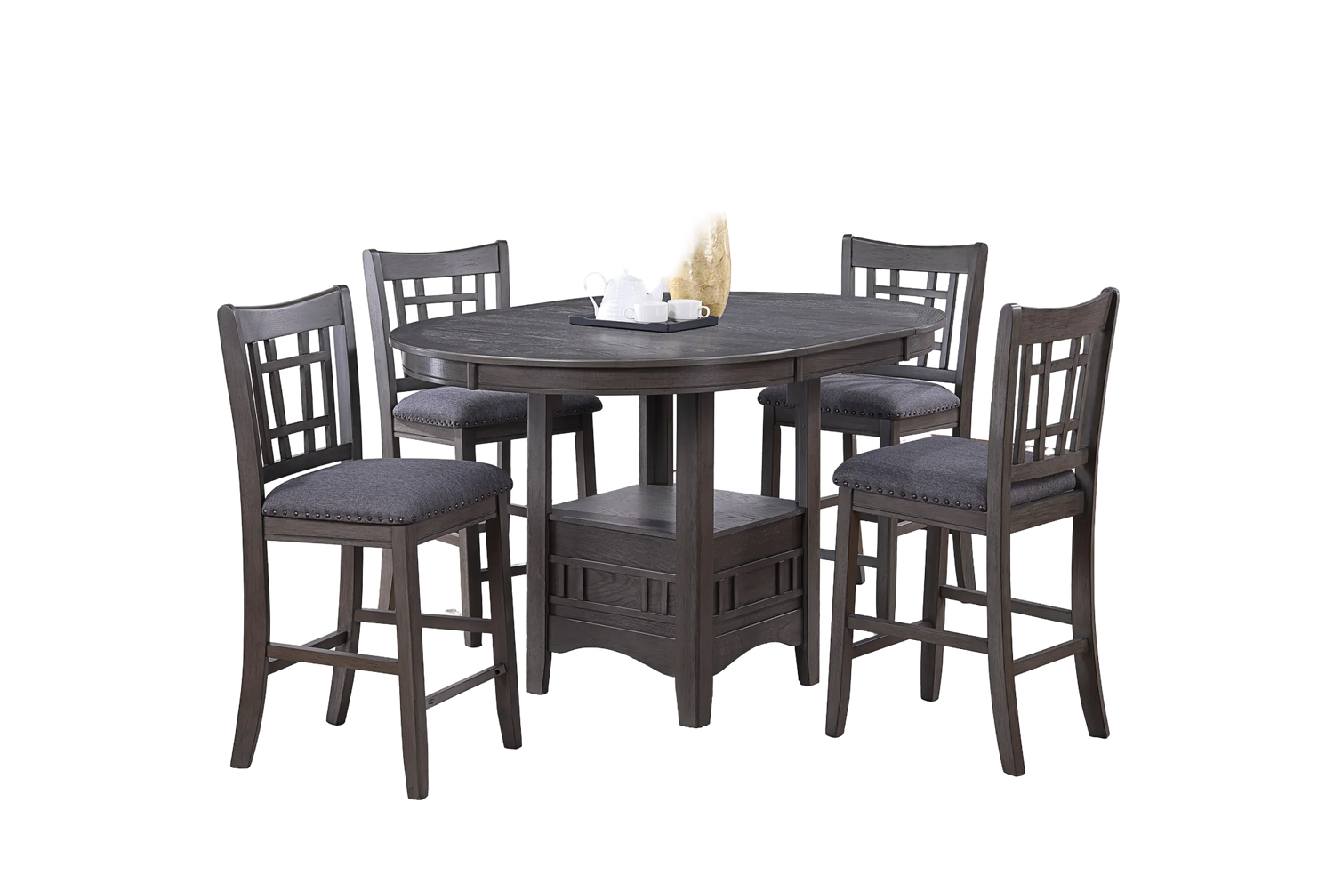 Dining Table Round Counter Height With Shelf Solid Wood Gray