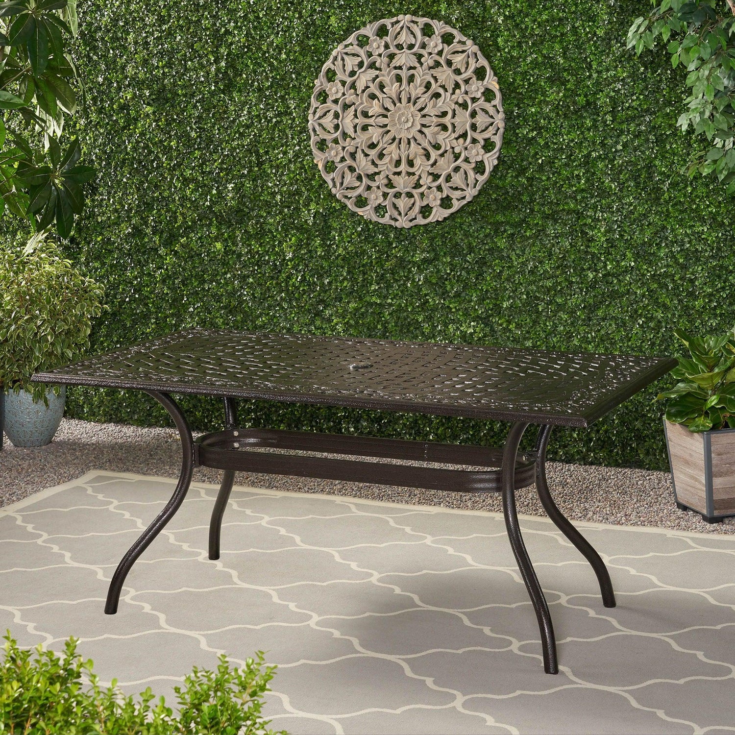 Celestine - Outdoor Cast Aluminum Dining Table With Floral Lattice Design And Umbrella Holder - Bronze