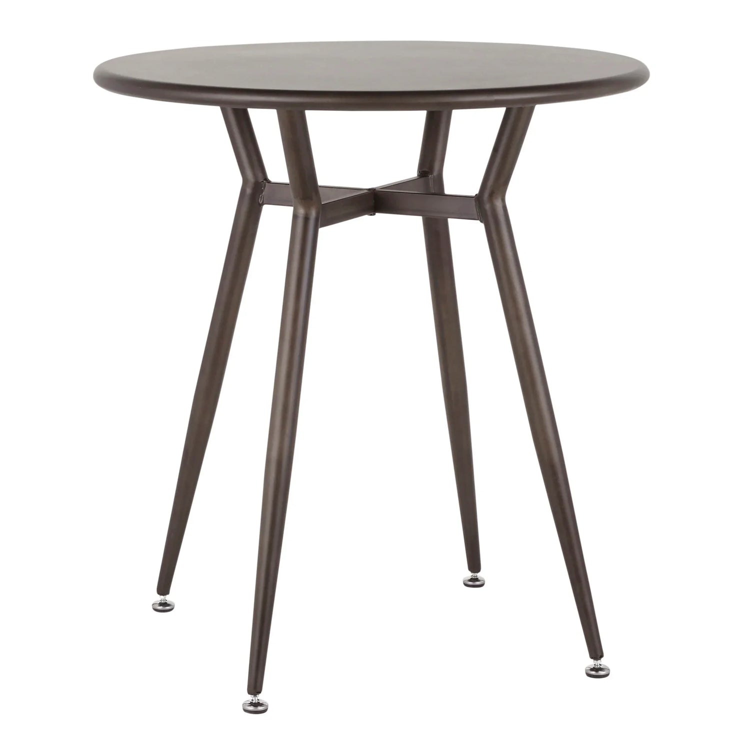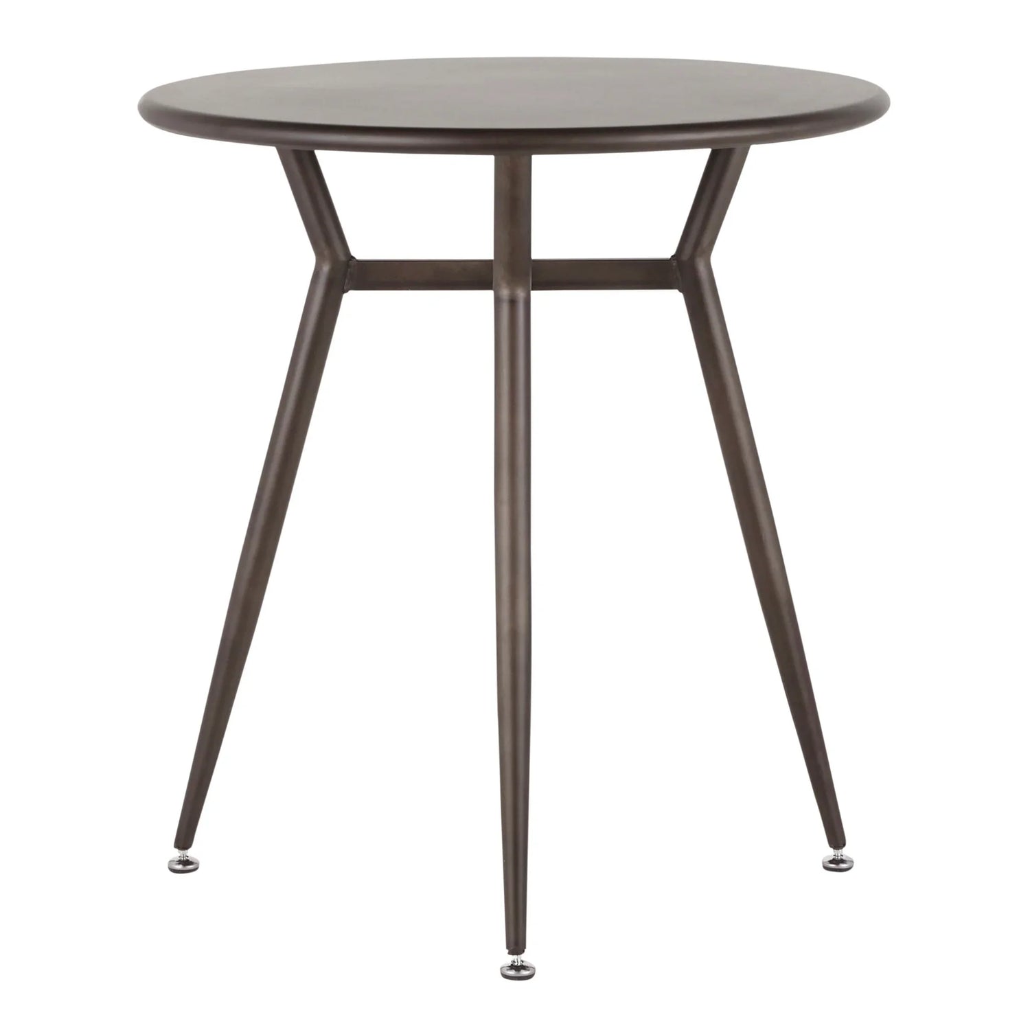 Built with durable painted steel legs and a slim round top finished in an antique tone, Clara delivers a lightweight yet sturdy surface for daily meals, coffee breaks, or working from home. Its distressed, low‑profile silhouette and exposed leg construction make it easy to tuck chairs around the perimeter and keep sightlines open in tighter spaces.