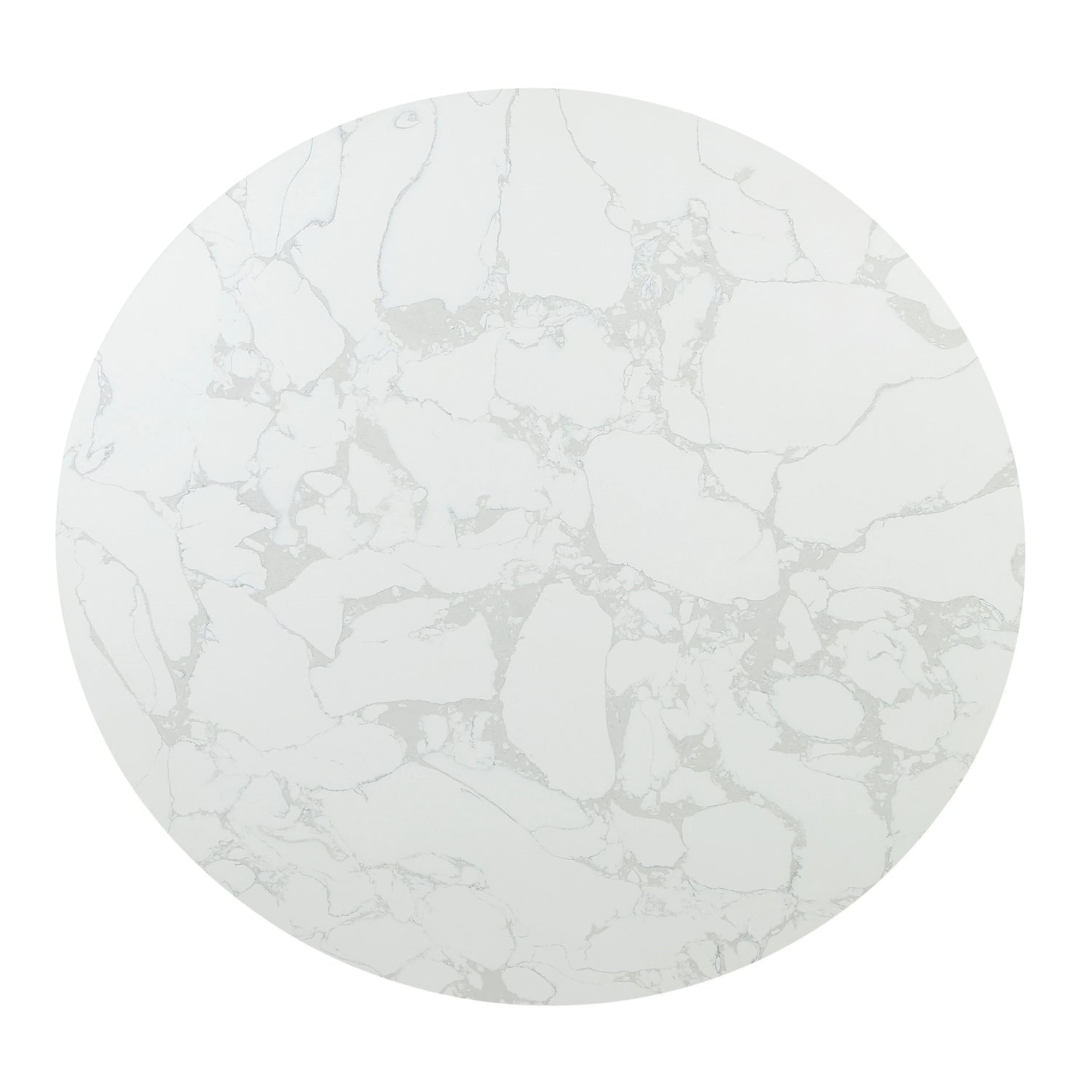 • High-design surface: White marble-look top with soft gray veining elevates everyday dining without the maintenance of natural stone.