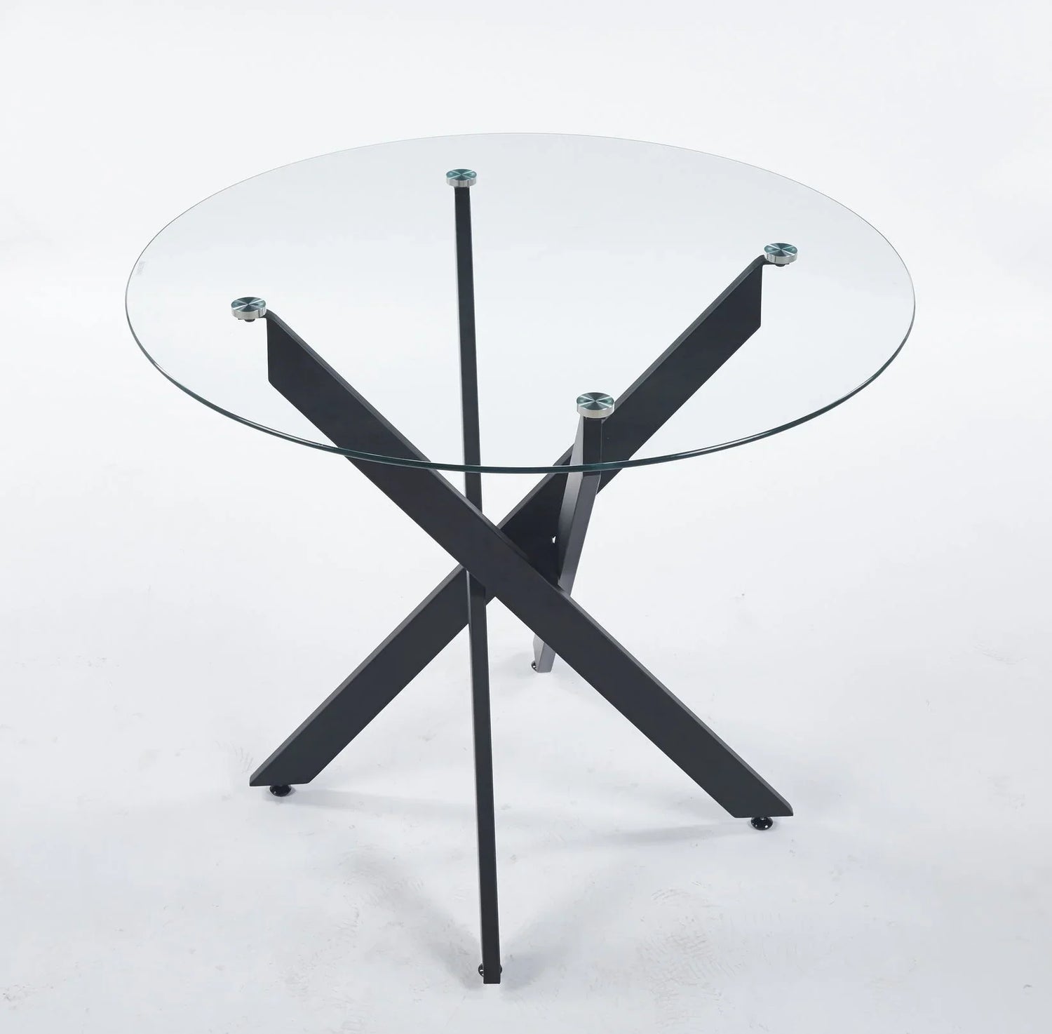 Dining Table With Cross Metal Leg And Tempered Glass, Modern Space Saving Kitchen Table For Living Room - Black