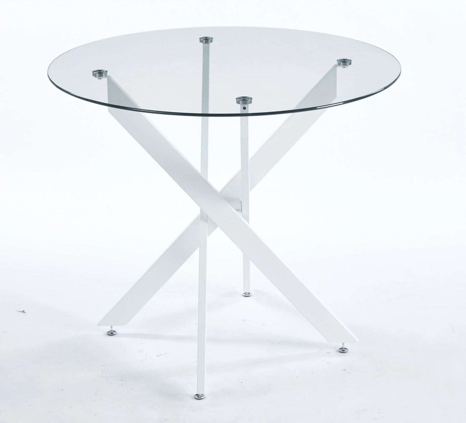 Dining Table With Cross Metal Leg And Tempered Glass, Modern Space Saving Kitchen Table For Living Room Legs - White