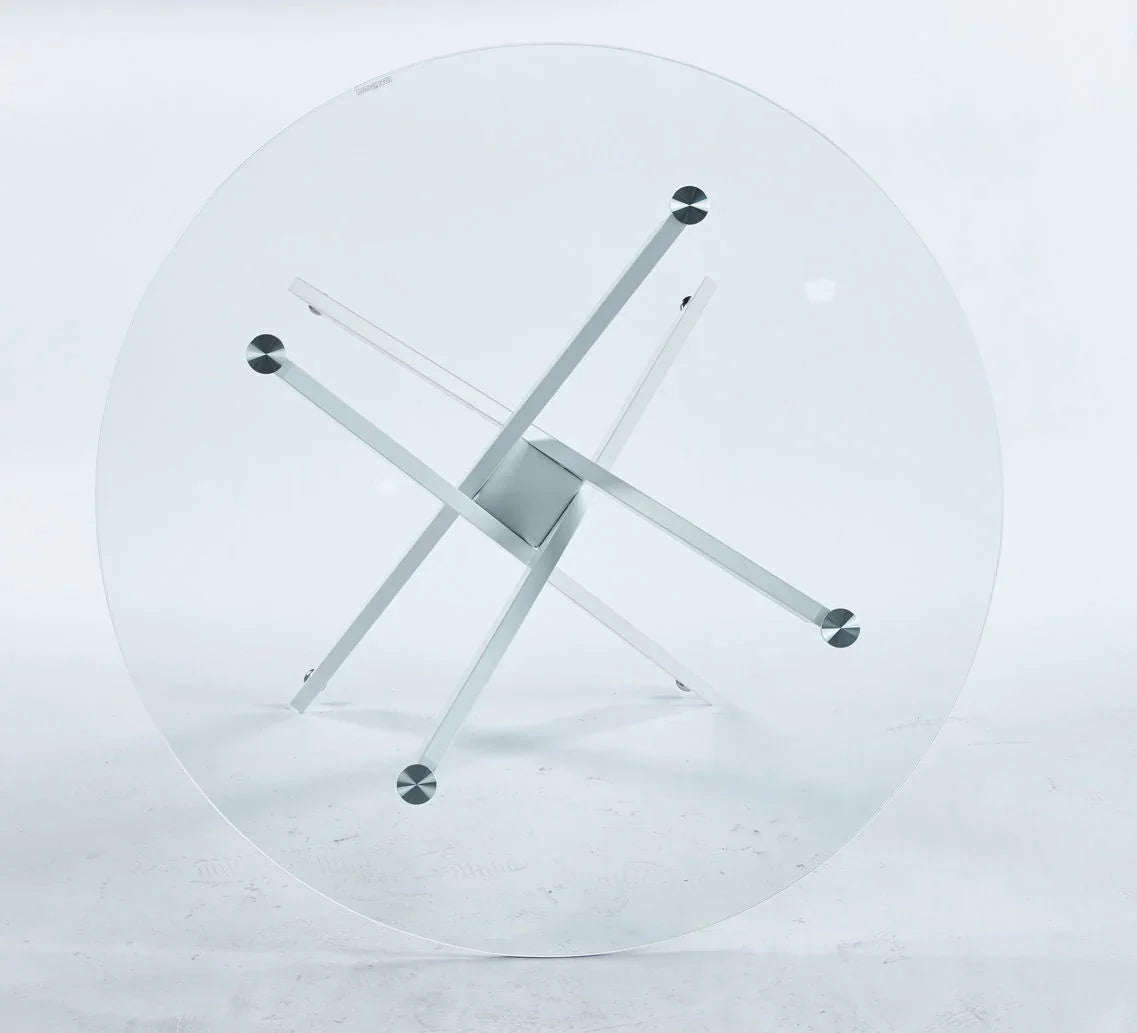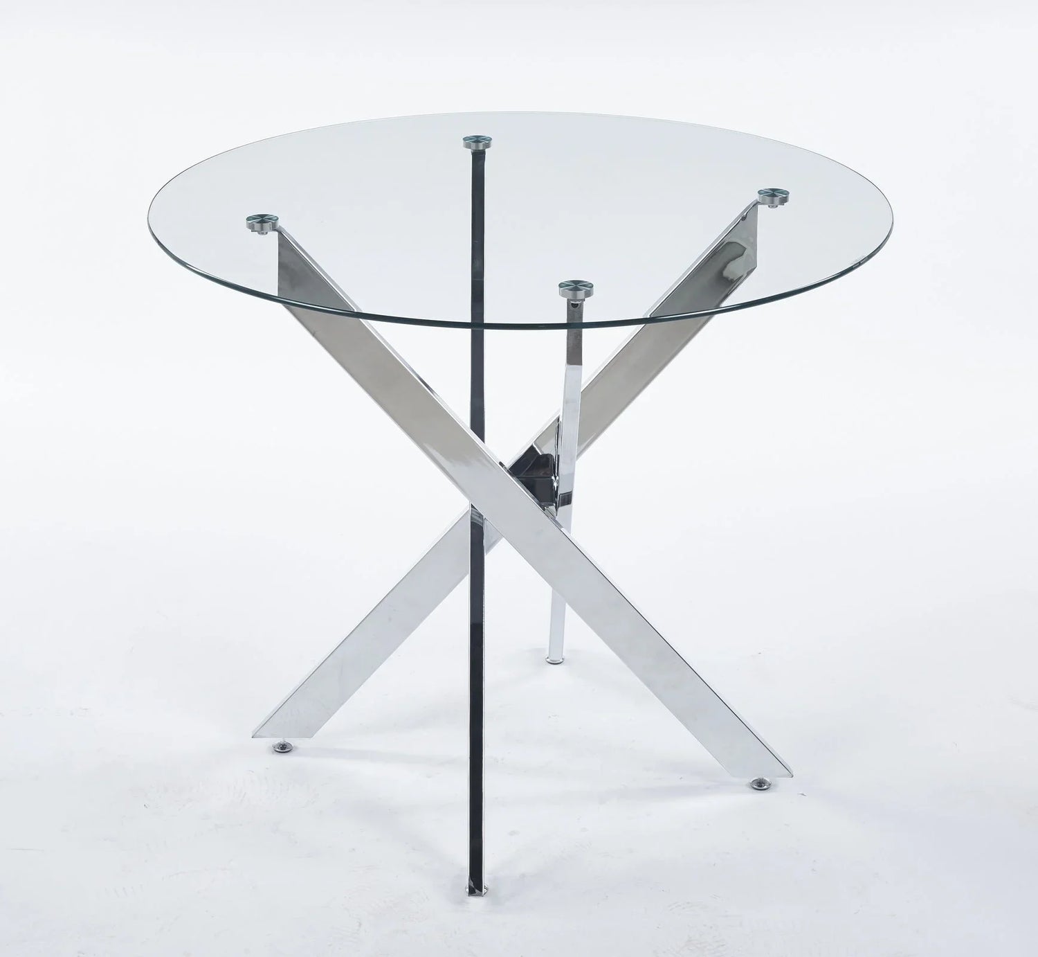 Dining Table With Cross Metal Leg And Tempered Glass, Modern Space Saving Kitchen Table For Living Room Legs - Chrome