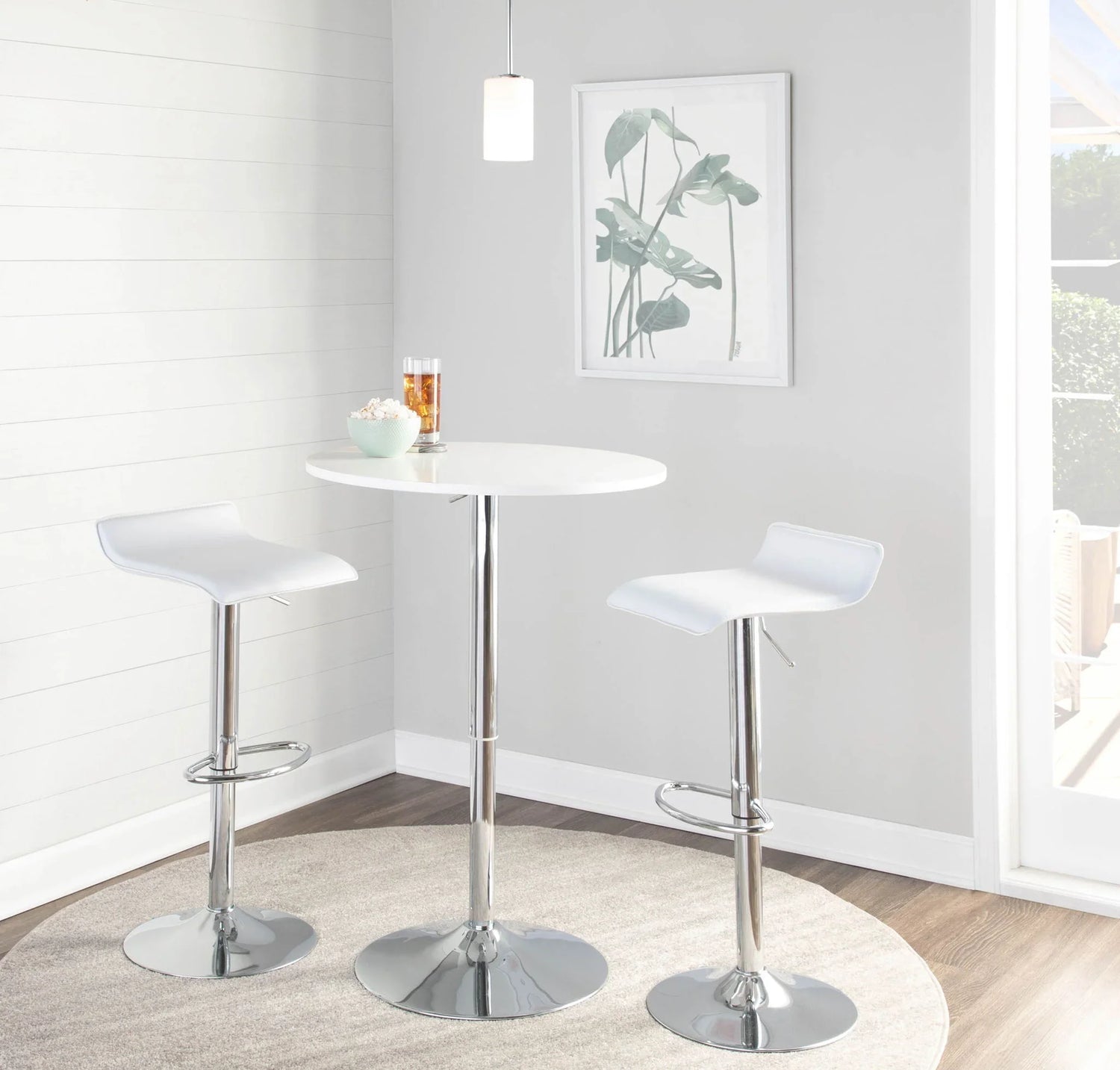 The Elia is a contemporary adjustable bar table designed for small dining nooks, compact apartments, or social corners in modern homes and hospitality spaces. With a round top and a single pedestal, it works as an intimate two-person dining surface at a lower height or, with the integrated hydraulic lift, as a taller bar-style table for casual gatherings—offering flexible use without reconfiguring your room.