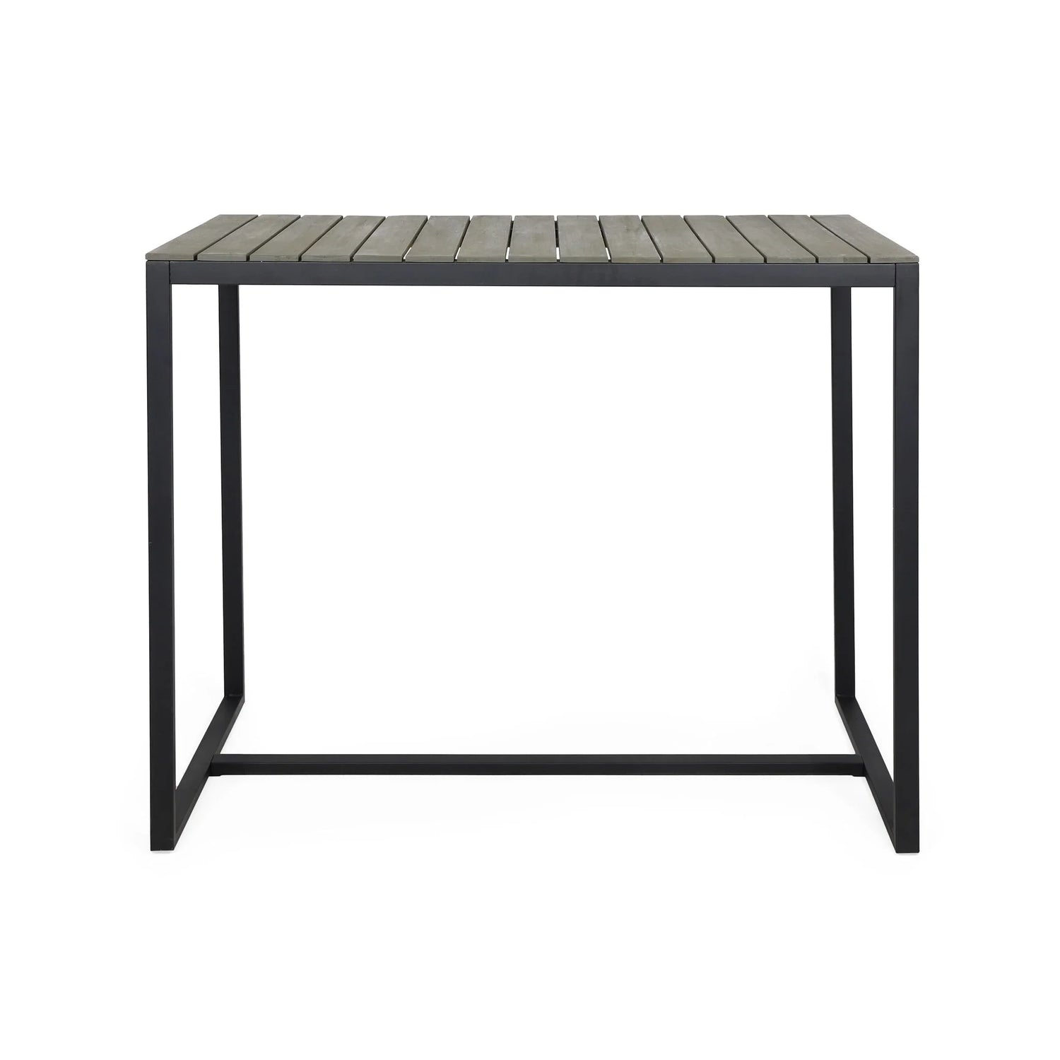 Ernesto - Outdoor Industrial Acacia Wood Bar Table With Metal Frame - Gray