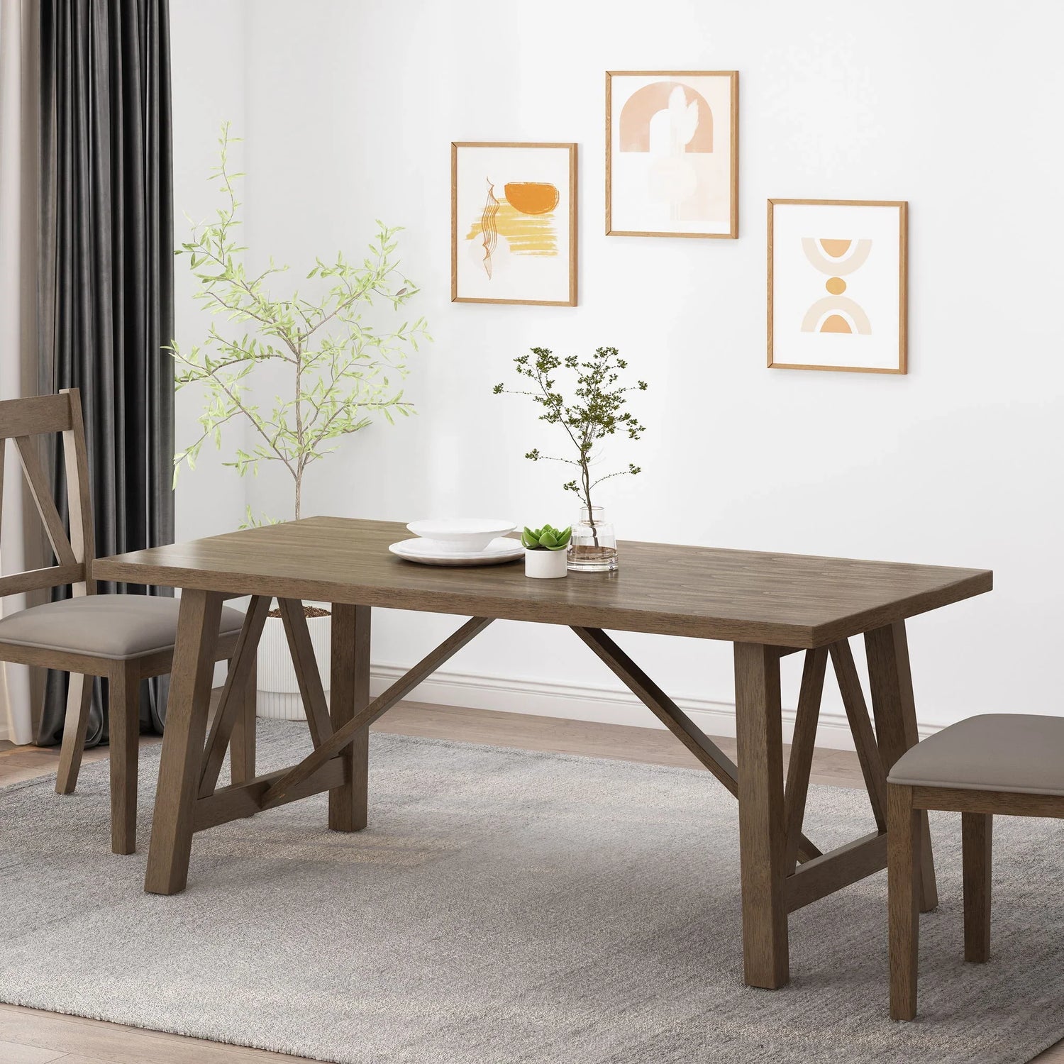 Farmhouse Style Dining Table With Wood Like Top - Antique Brown