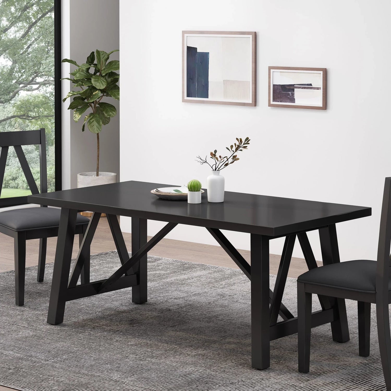 Farmhouse Style Dining Table With Wood Like Top - Matte Black