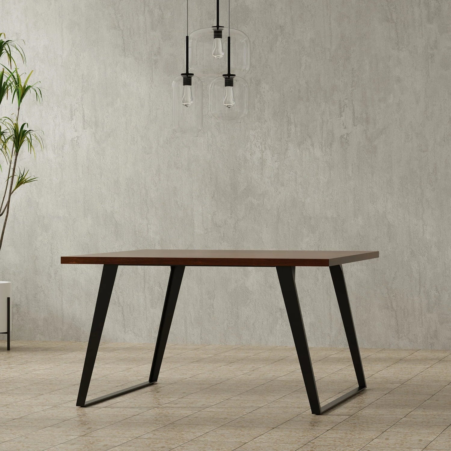 Every Lowry table is handcrafted with a real-wood veneer over an engineered wood core, giving you the look and grain of solid wood with a stable, warp-resistant construction. The matte black, angled metal base adds contrast and visual lightness while keeping the piece grounded; together these details create a durable, everyday dining table with a modern-industrial edge.