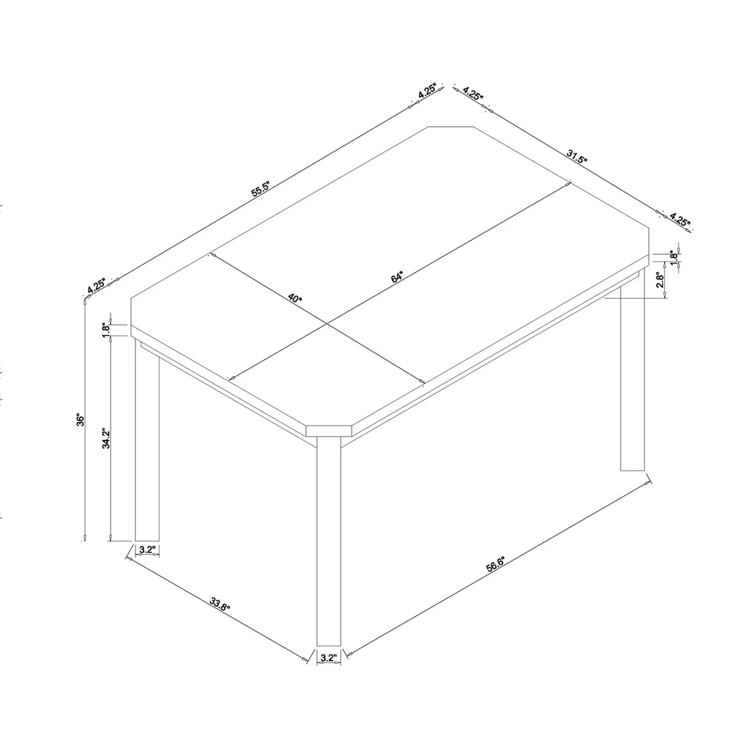 64.0"W x 40.0"D x 36.0"H - 121.0 lb