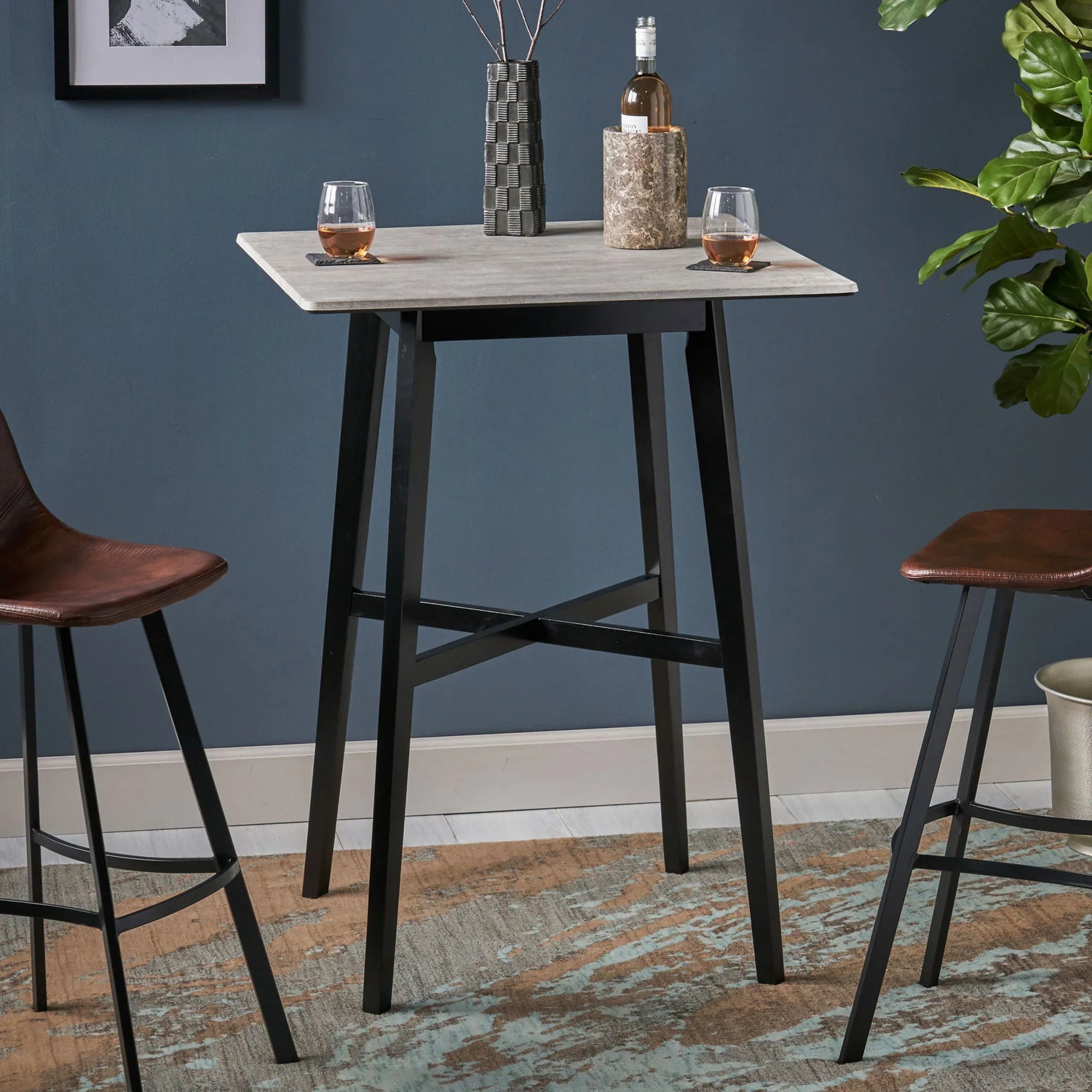Modern Bar Height Dining Table, Rubberwood Legs And Laminate Table Top - Gray / Black
