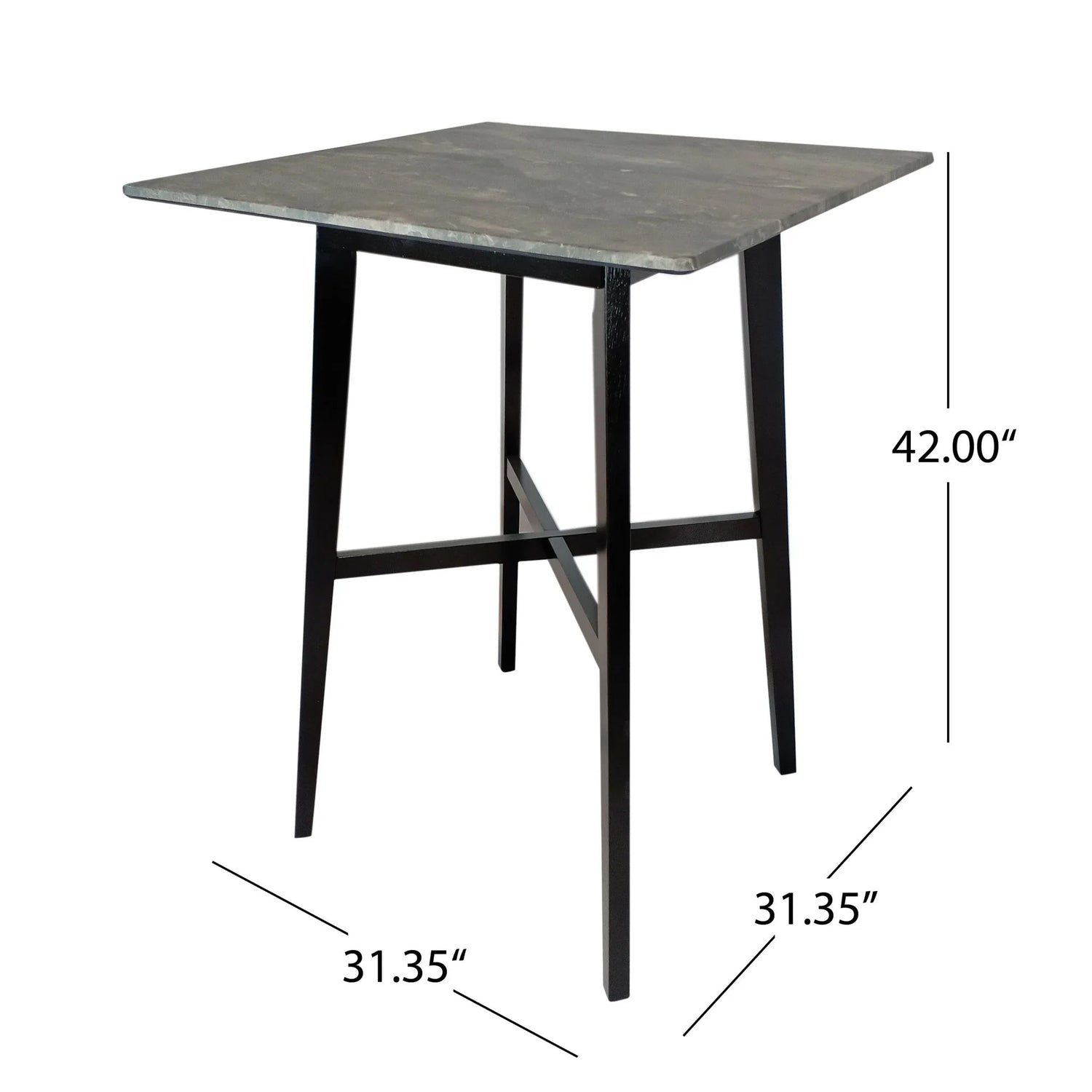 Modern Bar Height Dining Table, Rubberwood Legs And Laminate Table Top, Paladina Marble - Black