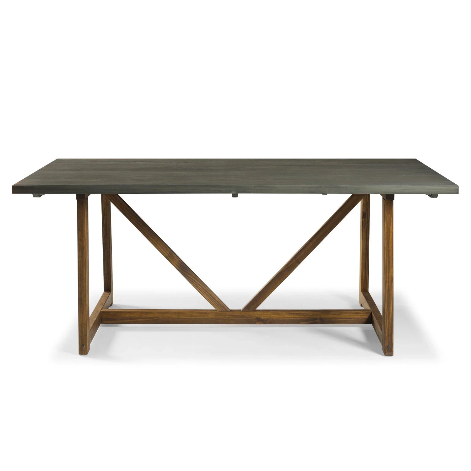 Modern Farmhouse Solid Wood V Frame Trestle Dining Table - Gray / Brown