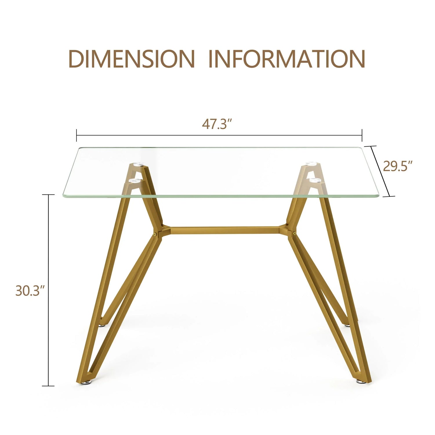 Modern Rectangular Glass Dining Table With Sturdy Metal Legs For Dining Room, Living Room, And Office - Gold