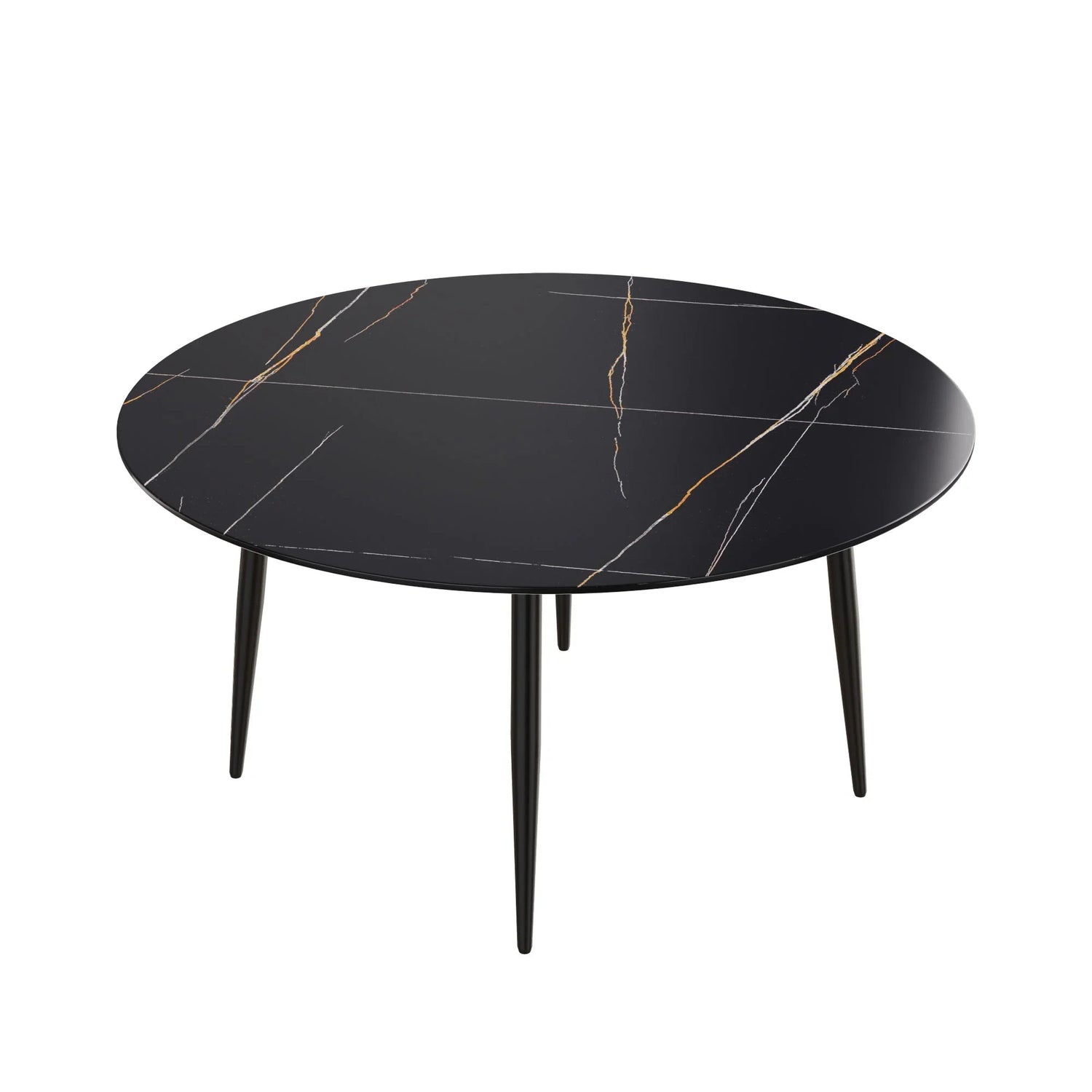 Modern Man-Made Stone Round Dining Table-Position For 6 People - Black / 59.05"W x 29.53"D x 59.05"H is backordered and will ship as soon as it is back in stock.