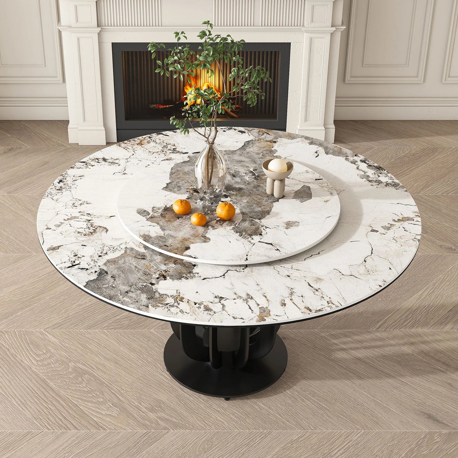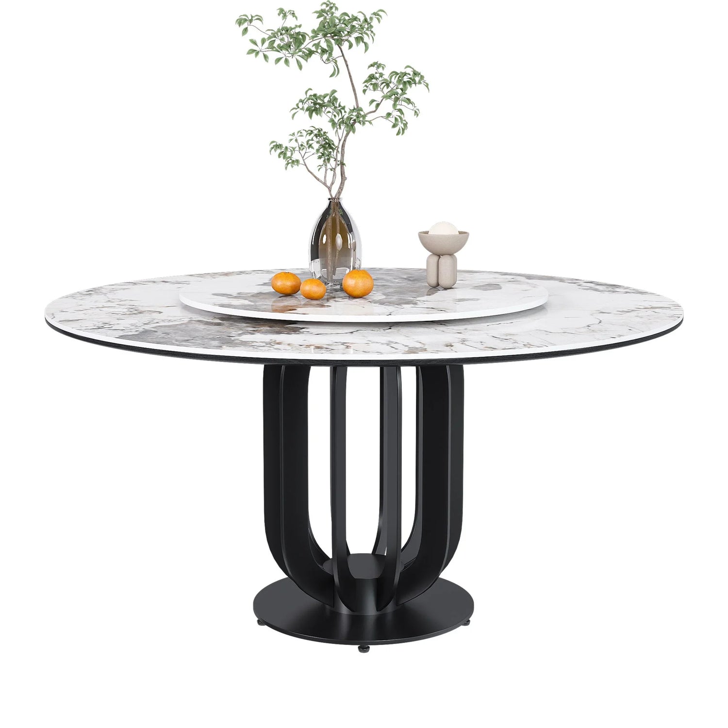 Round Dining Table With Carbon Steel Base And Lazy Susan Industrial Style - Black / White