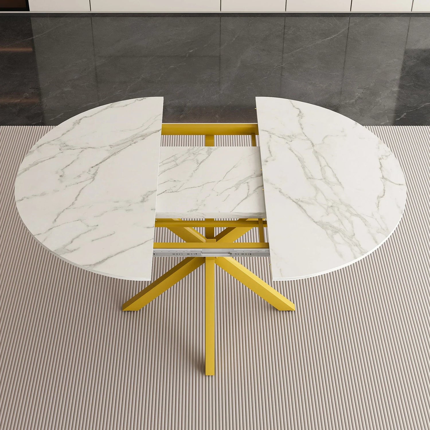 Round Dining Table With Extendable Blades, X Base, Fits 4 - 6 People - White