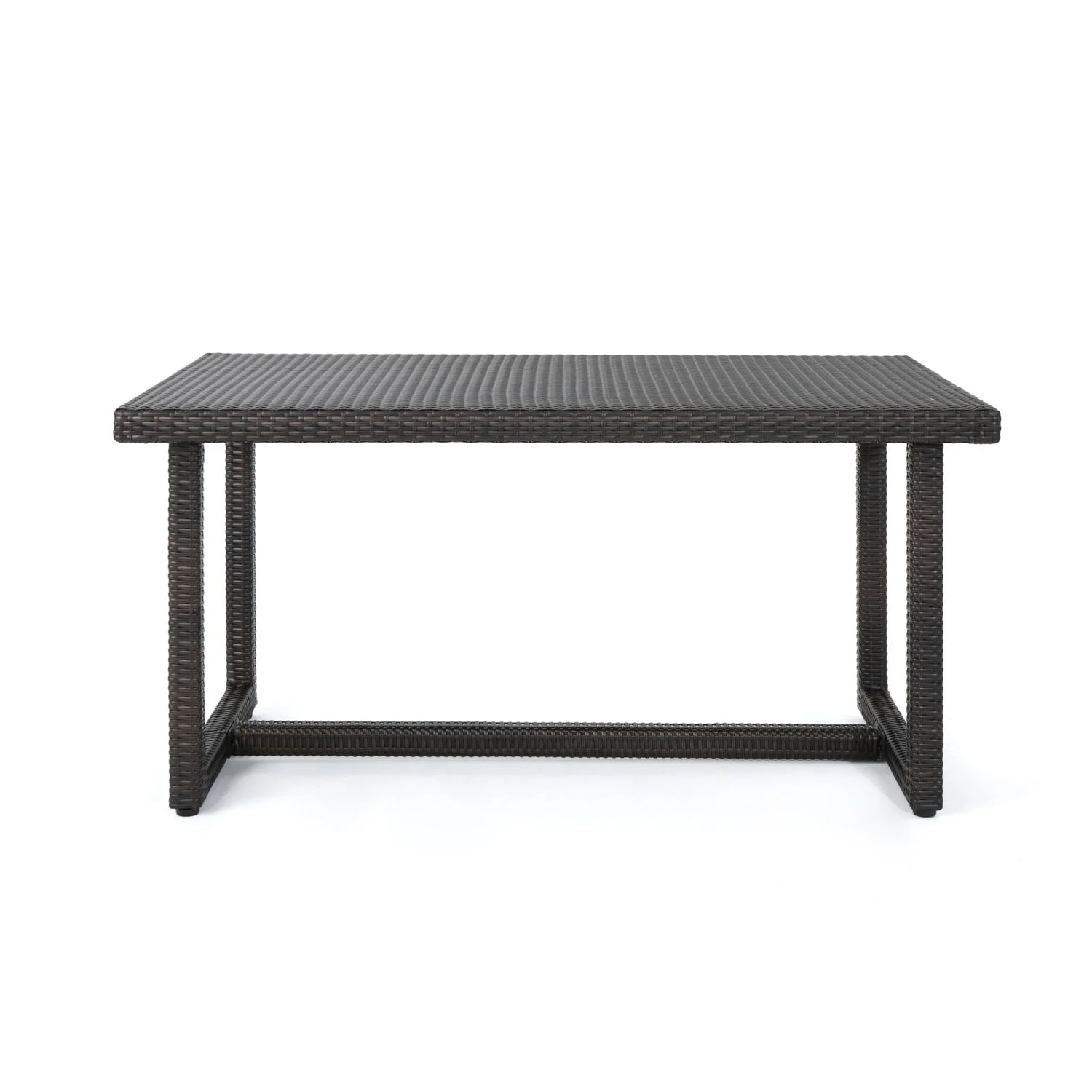 - Weather-Resistant Construction: Founded atop an iron frame and wrapped in synthetic wicker, this outdoor dining table is built to withstand the elements, ensuring year-round durability and use, even in adverse weather conditions.